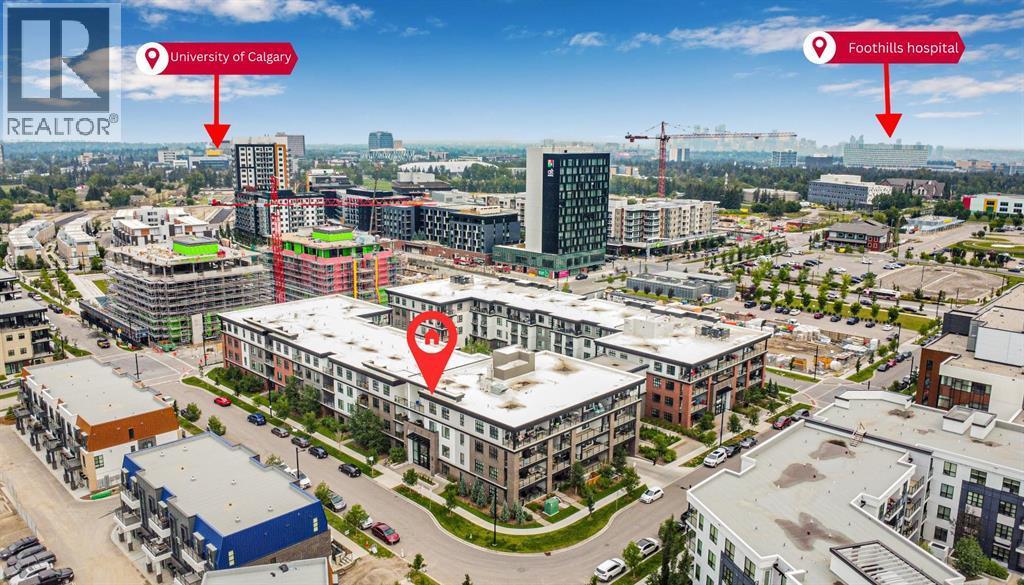 Welcome to your new home in the heart of the vibrant University District! This exceptional 2-bedroom, 2-bathroom condo offers the perfect blend of comfort, style, and convenience in one of Calgary’s most sought-after communities. Step into a thoughtfully designed and spacious layout featuring a unique floor plan and an abundance of natural light flowing through every room. The modern kitchen is a true showstopper, fully upgraded with premium quartz countertops, sleek cabinetry, elegant backsplash, and a stylish eating bar—ideal for both everyday living and entertaining. The open-concept design enhances the space, creating a seamless flow between the kitchen, dining, and living areas. Enjoy your morning coffee or evening unwind on the massive private balcony, offering additional space to relax or host friends during Calgary’s beautiful seasons. The unit includes two generously sized bedrooms, both with ample closet space and access to beautifully finished bathrooms—perfect for professionals, students, or small families. Additional highlights include in-suite laundry, upgraded lighting throughout, and ample storage solutions. This unit comes with a titled underground parking stall, offering added value and peace of mind. The building itself boasts impressive amenities, including a fitness room conveniently located on the same floor, a bike storage room, cycle room, and a pet wash station—catering to every lifestyle need. Situated in the award-winning University District, this condo offers unmatched location benefits. You’re just minutes from the University of Calgary, Alberta Children’s Hospital, Foothills Medical Centre, Market Mall, restaurants, cafés, grocery stores, movie theatre, parks, and endless walking trails. Whether you’re a first-time buyer, investor, downsizer, or looking for a prime location near campus and medical facilities, this home offers tremendous value, modern luxury, and urban convenience. Don’t miss your chance to live in one of Calgary’s most walkable and dynamic neighborhoods. Schedule your private showing today and experience the lifestyle University District has to offer! (id:6769)