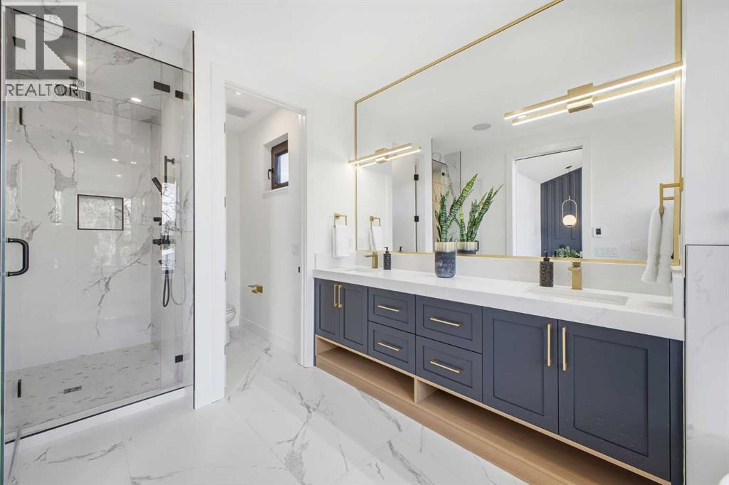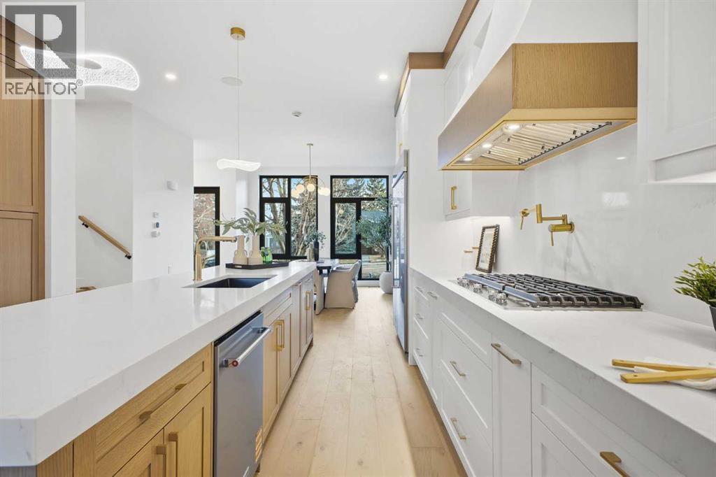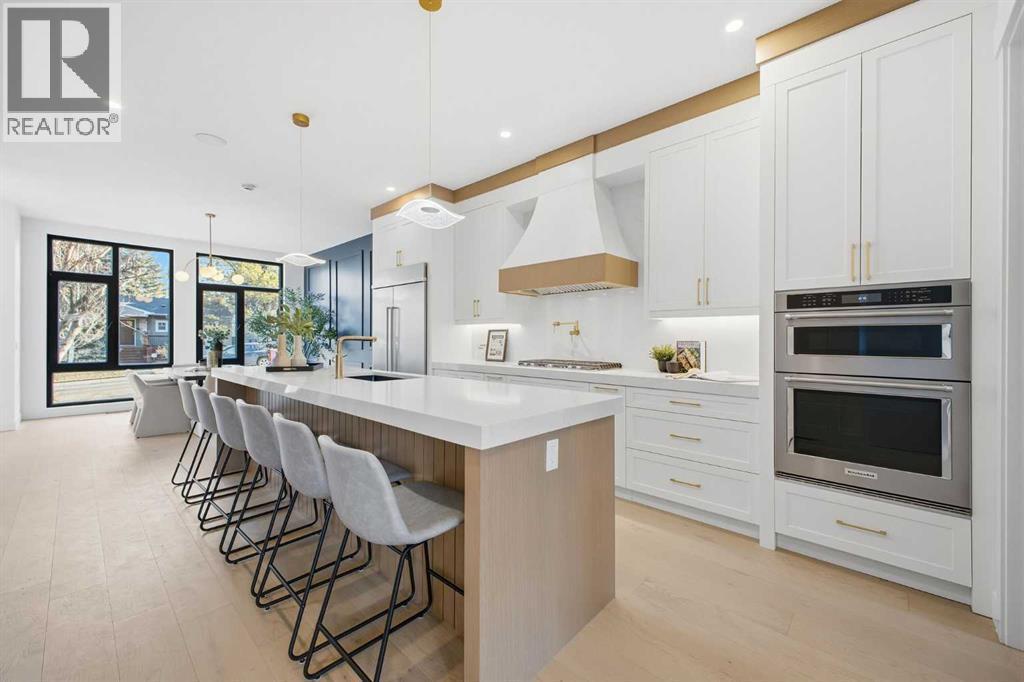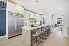 BRICK EXTERIOR | BUTLER'S PANTRY | MUDROOM | BONUS ROOM/OFFICE | STEPS TO TRANSIT | LEGAL BASEMENT SUITE | Welcome to 1427 26A Street SW, a beautifully crafted semi-detached infill located in the heart of Shaganappi. This brand new 2-storey home offers over 3,000 square feet of developed living space and blends luxury, functionality, and inner-city convenience. With three bedrooms plus a dedicated office, this home is perfect for families, professionals, or anyone seeking contemporary design with premium finishes. On top of that it offers a two bedroom legal basement suite.The main floor impresses with soaring 10-foot ceilings, wide-plank engineered hardwood flooring, and 8-foot doors. The gourmet kitchen features quartz countertops, a gas stove, built-in microwave, hood fan, custom cabinetry, a walk-in pantry, and a large island with breakfast bar seating. A formal dining area and a cozy living room with gas fireplace and built-in millwork complete this elegant open-concept space. A stylish powder room with designer lighting and custom vanity adds to the home's appeal.Upstairs, you'll find 9-foot ceilings throughout, an expansive primary bedroom with large windows and 13.5 foot vaulted ceilings, a walk-in closet with custom built-ins, and a luxurious 5-piece ensuite with in-floor heating, dual sinks, quartz counters, freestanding soaker tub, and a tiled glass shower. Two additional bedrooms offer generous space and light, while the main bathroom includes double sinks and full-height tile tub surround. The upper floor also features a spacious laundry room with built-in cabinetry and a linen closet.The basement is a two bedroom legal basement suite with a separate entrance, offering a nicely sized living and kitchen area, engineered hardwood flooring, and a 4-piece bathroom. Additional highlights include central air rough-in, smart thermostat, HRV, high-efficiency furnace, 100 AMP panel in the home, and a sump pump. The exterior is finished with a combinatio n of Hardie board, brick, and stucco, paired with dual-pane black vinyl windows. Enjoy outdoor living with exposed aggregate walkways, a rear deck, full landscaping, and a BBQ gas line.Backed by a comprehensive builder warranty and the Alberta New Home Warranty Program, this home provides peace of mind along with exceptional value. Located minutes from downtown, transit, schools, parks, and shopping, this is a rare opportunity to own a brand-new home in one of Calgary’s most desirable inner-city communities. (id:6769)