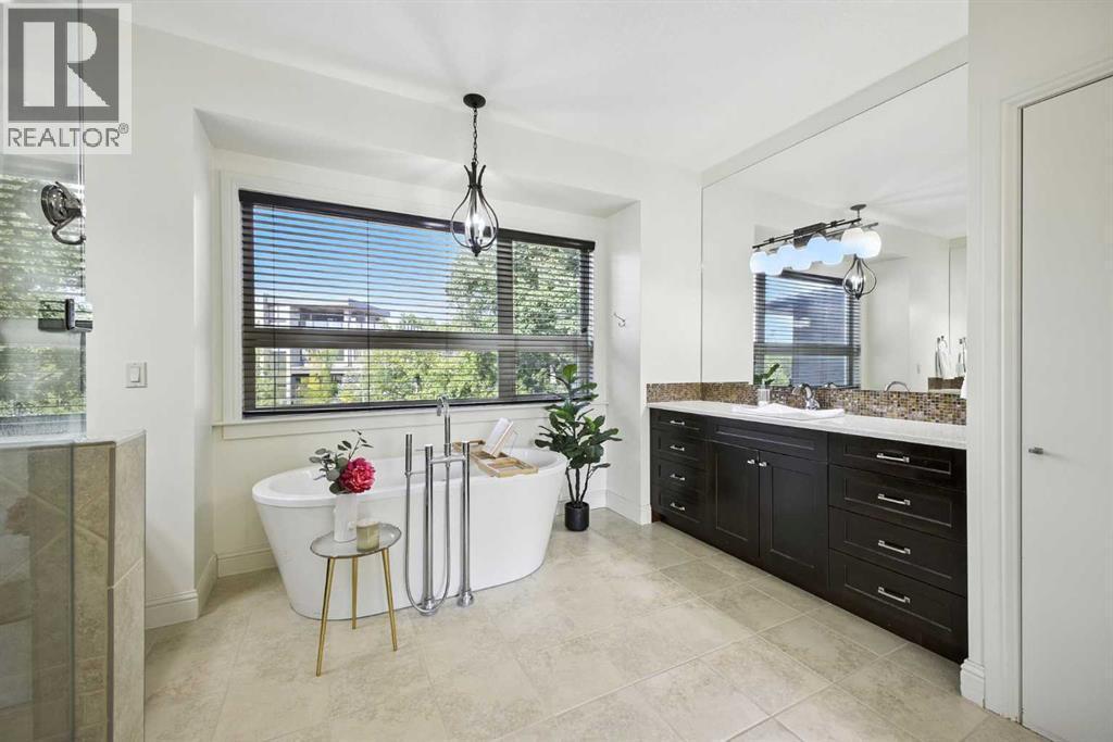 This stunning 4767 sqft 4 bed/3.5 bath luxury home, w/oversized triple garage, on 0.41 acres (one of the largest lots ) on exclusive Posthill Dr, exudes classic craftsmanship with exceptional finishings. Upon entering, you'll appreciate the soaring 10' ceilings, beautiful hardwood flooring, wall of windows bathing the area with light. The elegant living/ dining spaces share a stunning stone faced double sided gas fireplace with wood mantles to cleverly define the space, & sweeping views over the private backyard oasis, ideal for hosting large gatherings. The gourmet kitchen is an entertainer's dream, featuring an oversized island w/clever storage built into either end, quartz counters, gorgeous Jatoba custom cabinetry, 6 burner Viking gas range, Thermador wall oven, Miele dishwasher, & Frigidare Gallery refrigerator. The butlers pantry off the kitchen features additional quartz counter space & sink, matching cabinetry & built in storage for all your entertaining needs. The mudroom features a large walk in closet w/custom built ins to help organize those hectic arrivals home with kids. A generous office & large powder room complete the main floor. The bright upper floor features central AC, 9' ceilings, and in the open area is a custom built in bookcase w/seating, & homework area just outside the secondary bedrooms. The serene primary suite features a wall of windows flooding the room with light, a cozy sitting area w/gas fireplace, faced with custom millwork, ideal for unwinding at the end of the day. The large walk in closet features custom built in shelving & drawers. The luxurious 5 pc ensuite features a large glass steam shower, freestanding soaker tub, his & hers vanities and in floor heat for those chilly mornings. The two large secondary bedrooms each feature several windows & walk in closets w/ custom built ins. The huge upper shared bath has individual personal vanity areas, custom built in shelving w/cabinetry & private soaker tub & shower room plus priv ate water closet, perfect for kids of any age. In the fully finished lower level you'll find a large recreation area featuring a dry bar w/full sized fridge, gas fireplace and plenty of space for kids to play or enjoy cozy family movie nights. The light filled lower guest bedroom features a walk through closet with custom built ins and adjoins a large 3 piece bath w/huge glass shower, allowing for ultimate guest privacy. Zoned in-floor hydronics make heating the lower level even cozier. The triple oversized heated garage has 12' ceilings, perfect for car lifts. The exceptional backyard oasis features a large deck plus an additional BBQ deck off the kitchen, flag stone patio and exudes a park like setting surrounded by aspen groves. Posthill Drive is an enclave like no other and this home exceeds expectations. Close to exceptional schools, restaurants & shops, as well as easy access to Stoney Trail from 17th Ave, making going downtown or to the mountains a breeze. View this exceptional property today! (id:6769)