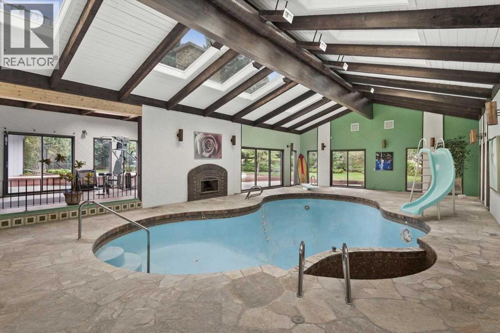 *OH | Sat & Sun | Nov 1 & 2 | 2-4:30pm* Extremely rare opportunity to own one full Acre of land, a truly unique estate property nestled in a lush park like setting, private grounds in one of Southwest Calgary’s most coveted communities- Pump Hill. Surrounded by mature trees and located directly across from a tranquil green space, this sprawling family home offers 5 spacious bedrooms, with over 9,000 (pool area included) square feet of living space awaiting your dream renovation.From the moment you step inside, the grand two-storey foyer with its sweeping curved staircase sets the tone for the home's timeless charm and generous proportions. The main floor features expansive formal living and dining rooms, a chef-inspired kitchen with professional-grade gas range, and an informal dining nook overlooking the gardens. A warm and inviting family room is finished with rich wood paneling and a striking corner stone fireplace—perfect for gathering with family or hosting guests.The indoor swimming pool complex includes a hot tub, sauna, and a dedicated fitness area—all housed in a bright, skylit pavilion that brings the outdoors in, year-round. Currently decommissioned, the indoor pool complex could be returned to its former glory or re-envisioned as a golf simulator, sport court, artists studio, collectable car display or hobby room.Three spacious bedrooms, each with its own ensuite, are thoughtfully located on the main level. Upstairs, a private primary retreat offers a peaceful escape, complete with a sunny balcony and large ensuite featuring a stylish freestanding soaker tub and a large walk-in shower. A fifth bedroom with powder room and a handsome library overlooking the foyer complete the upper level.The lower level is a nod to retro glamour, boasting a groovy naugahyde bar and lounge, games room with pool table, expansive recreation room with brick archway and wrought iron accents, a large media room and a wine cellar.Outside, the beautifully landscaped backyard is a true extension of the home, with multiple levels of paver stone patios for lounging and dining, a built-in fireplace, lower-level gas fire pit with seating, and gardens of established perennials, lush lawns and mature trees. This spacious yard could easily accommodate a hockey rink, basket ball, pickle ball or tennis courts.The circular front drive welcomes guests in style at the double carved-wood front entry doors, that lead to an attached 4-car heated garage with plenty of room for vehicles and all your gear. Beside the garage there’s an RV pad or the perfect place to store your sailboat.Ideally located near great shopping, dining, and amenities, this exceptional estate is also just minutes from the Glenmore Park and Reservoir, Glenmore Sailing Club, and Calgary’s extensive pathway system. With easy access to downtown and major roadways, this is inner-city estate living at its finest—rarely available and truly unforgettable. (id:6769)