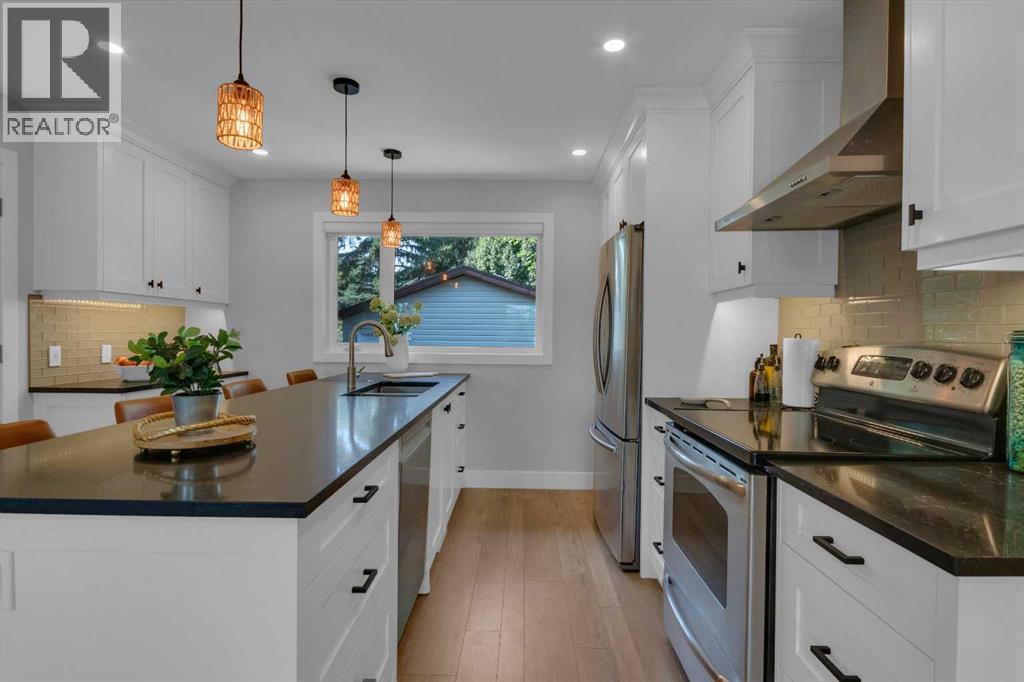 Welcome to 39 Midpark Close, a thoughtfully laid out and beautifully renovated bungalow in the highly sought-after lake community of Midnapore.This home offers a lifestyle that’s hard to match. Located on a quiet street just a short three-minute walk to the south entrance of Midnapore Lake, where residents enjoy year-round private lake access. Summer days can be spent swimming, paddle boarding, or relaxing at the beach, while winter invites skating, hockey, and fireside gatherings. With Fish Creek Provincial Park also steps away, you’ll have endless pathways and natural beauty at your doorstep.The curb appeal is immediate with durable Hardie board siding, a front deck that feels like a private retreat, and an exposed aggregate walkway leading to your front door. Morning coffee or evening wine on the front deck offers peaceful views of mature trees and open fields across the street where kids can play within earshot. Out back, you’ll find another impressive outdoor living space with an exposed aggregate patio, a pergola, and a double detached garage, making the yard both functional and perfect for entertaining.Inside, nearly every detail has been thoughtfully updated. The open concept main floor features new flooring throughout, fresh interior paint, and modern ceilings finished with recessed pot lighting and designer fixtures. The living room showcases a beautifully redone fireplace, framed by oversized windows that flood the space with natural light and connect you to the outdoors.The kitchen is both stylish and functional, offering ample storage, breakfast bar seating, and easy flow into the dining and living areas, making it ideal for entertaining. Bathrooms have been fully renovated with modern tile finishes, contemporary vanities, and matte black hardware. Every door, trim, and handle has been updated for a fresh, cohesive look, while new carpet adds comfort where it matters most.Mechanical updates mean peace of mind with a new furnace (2023) and ai r conditioning (2023) for efficient, year-round comfort. A new washer and dryer are also included.The finished lower level extends the living space with a large recreation room, perfect for movie nights, a play area, or a home gym with the same bright, modern finishes carried through.The location is ideal for families with excellent schools nearby including Midnapore School, Midsun Junior High, Trinity Christian School, Centennial High School, and St. Teresa of Calcutta Catholic School. Shopping, dining, and daily conveniences are minutes away at Midnapore Mall and Shawnessy Centre. Quick access to MacLeod Trail and major routes makes commuting throughout Calgary simple and efficient.This is more than a move-in ready home, it’s a lifestyle. With extensive upgrades, a quiet and established location, and unbeatable access to both lake and park, 39 Midpark Close offers a rare opportunity to enjoy the very best of Calgary living. (id:6769)