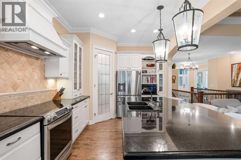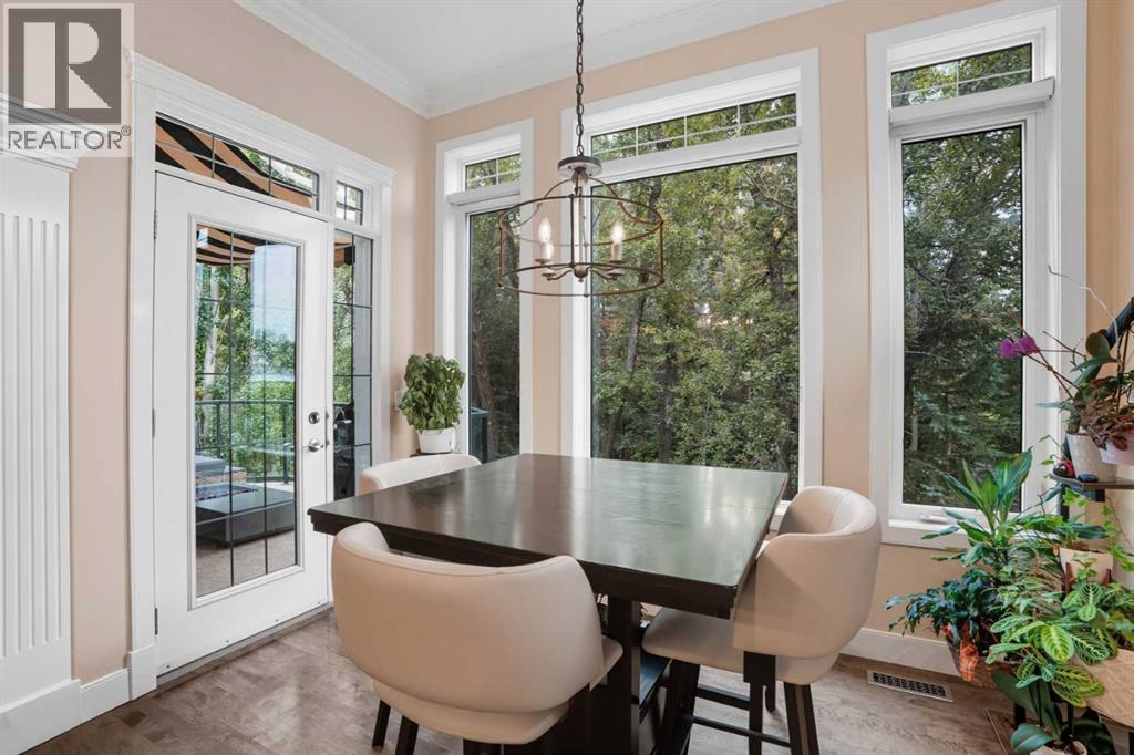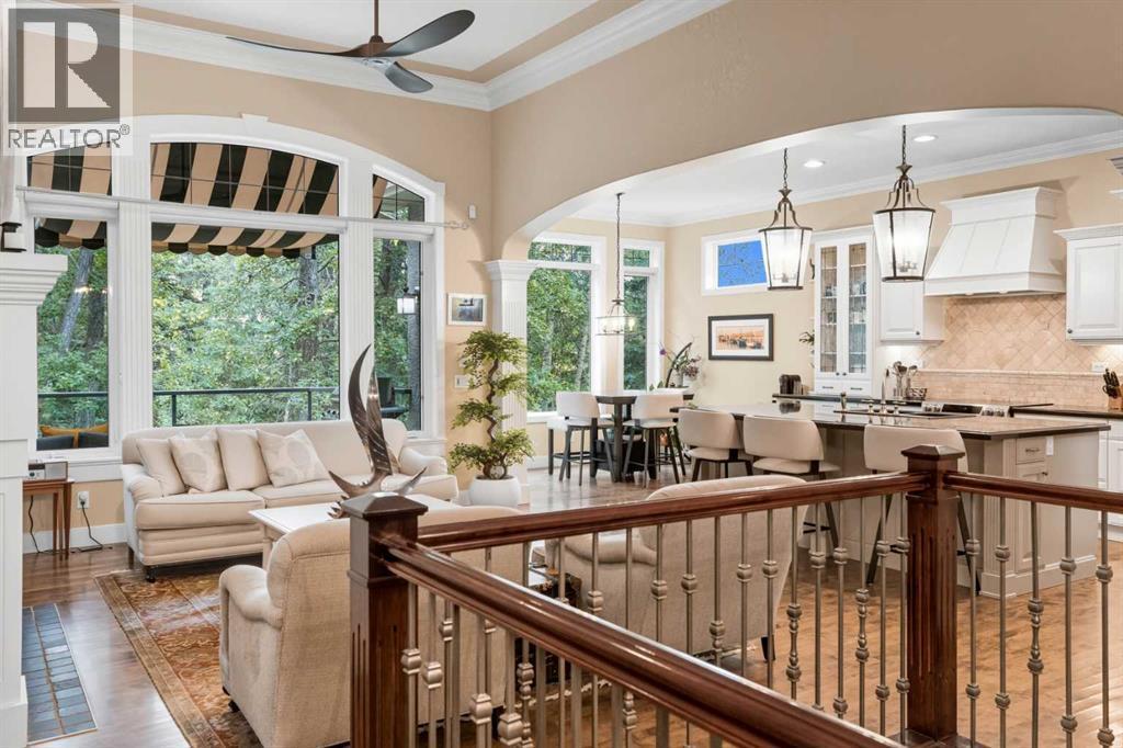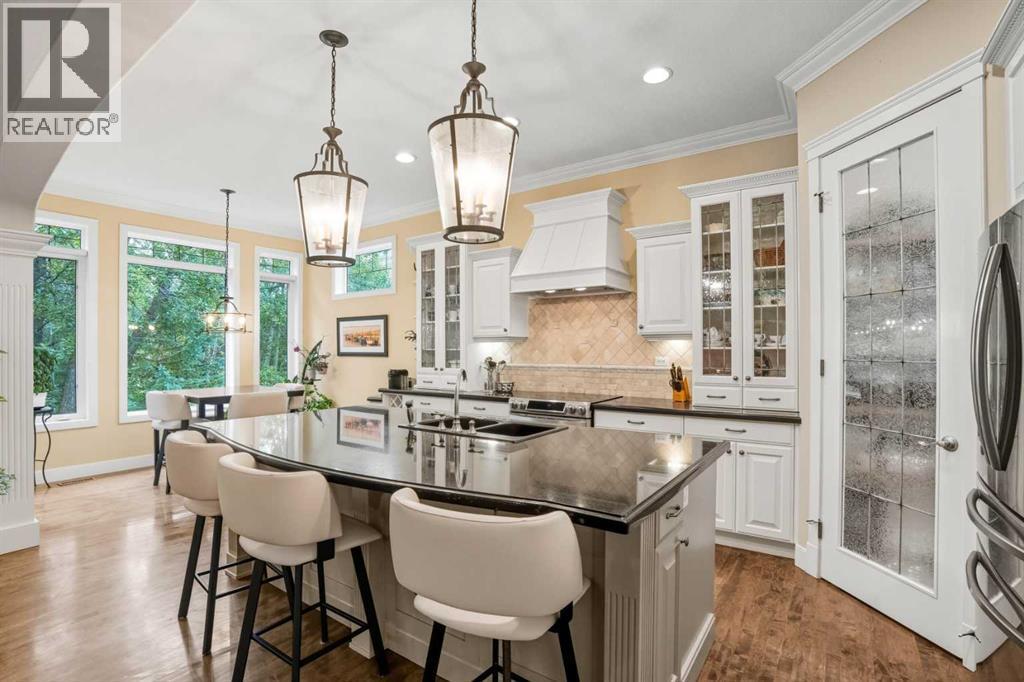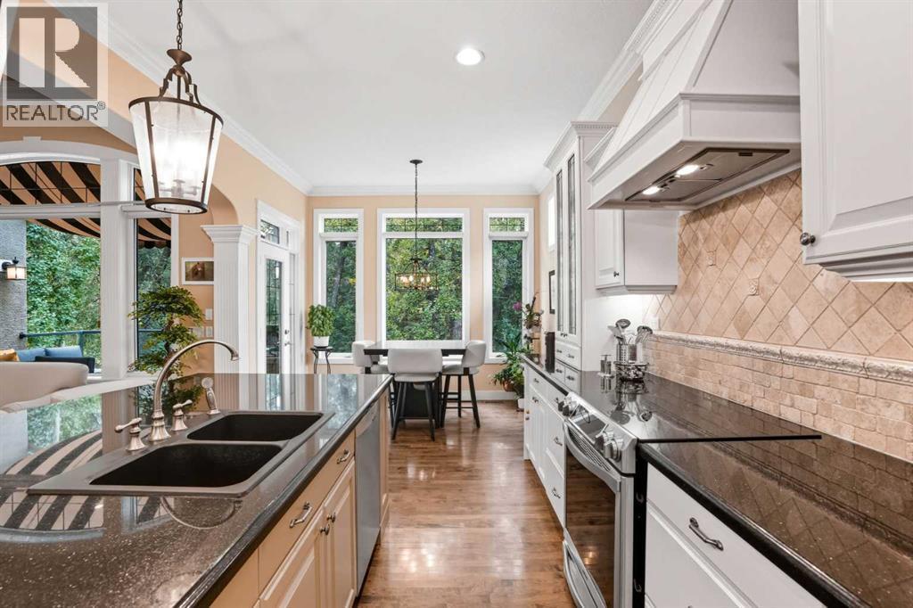 **Open House on Saturday, October 25, from 1-3 pm** Banff in the city… this is how life feels in Discovery Ridge. Tucked along the quiet beauty of Griffith Woods, this exquisite walkout bungalow is a rare find—timeless in its elegance, yet carefully updated with thoughtful, modern touches.From the moment you step inside, the home greets you with soaring ceilings, rich millwork, and warm hardwood that together create a sense of refined luxury. The living room, anchored by a beautiful fireplace, looks out through expansive windows to the forest beyond—a daily reminder that here, peace and privacy are yours. The gourmet kitchen is as inviting as it is functional, with a large island, granite counters, and a bright breakfast nook that catches the morning sun. Just beyond, a formal dining space welcomes gatherings, while a charming main floor office framed by bay windows offers an inspiring place to work. The primary suite completes the main level, its serene outlook onto the trees paired with a luxurious ensuite and custom walk-in closet, making it the perfect retreat.Downstairs, the walkout level extends the living experience with 9’ ceilings, cozy in-floor heat, and a sense of comfort that invites you to linger. A spacious family room flows naturally into a private theatre, with a massive entertainment space. For family or guests, a full second kitchen—complete with oven, dishwasher, refrigerator—offers self-contained convenience. Two generous bedrooms and a large exercise bonus room ensure plenty of space for everyone.This home is as practical as it is beautiful. A new high-grade Vacuflo system has just been added and the garage includes a custom platform for an extra fridge or freezer. Outside, the home is elevated by Gemstone lighting that sparkles year-round, casting a warm glow over evenings spent on the private deck or lower patio. The backyard feels like a retreat, with mature trees creating a natural screen. Through a discreet gate, your own private trai l connects you directly to the endless pathways of Griffith Woods—a haven for biking, walking, and quiet reflection.Discovery Ridge is one of Calgary’s most treasured communities: secluded, peaceful, and embraced by nature, yet only minutes to the city’s best amenities. This is more than a home—it is a sanctuary, a gathering place, and a lifestyle, all in one. (id:6769)