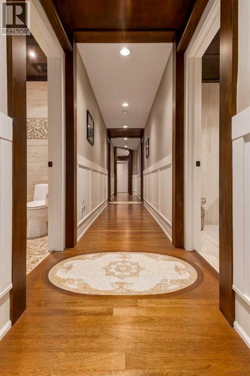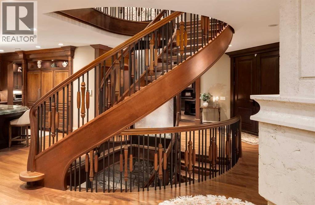 Modelled in the same Chateau style as the Banff Springs Hotel and the Chateau Lake Louise, this exceptional home boasts the same quality materials found in these iconic properties. As you tour this masterfully designed home, you will be awestruck by the unparalleled attention to detail and the symmetry and balance in repeating themes. Circular elements can be found on the interior doors, in the inlaid pattern on the driveway, crafted into the custom hood fan and in the decorative tile backsplash. Arched doorways and windows, domed ceilings and barrel vaults are some of the curved elements that soften the straight lines of perfect symmetry throughout the home. Forged steel light fixtures, door handles and railings are softened by rich wood and natural stone. There was truly no detail overlooked when creating this work of art. With over 4,500 square feet of finished living space, five bedrooms, all with ensuite bathrooms and walk-in closets, a walk-out basement, a large bonus room, a spectacular entertaining bar, a media room, two staircases and an oversized triple attached garage, this home is perfect for large families. Impeccably finished with only the highest quality materials, this home features top-of-the-line appliances, carefully curated hardware, hardwood and stone imported from Brazil, exterior copper accents, cobblestone and endless custom millwork crafted on-site. With so many incredible details, this home must be seen to be truly appreciated. (id:6769)