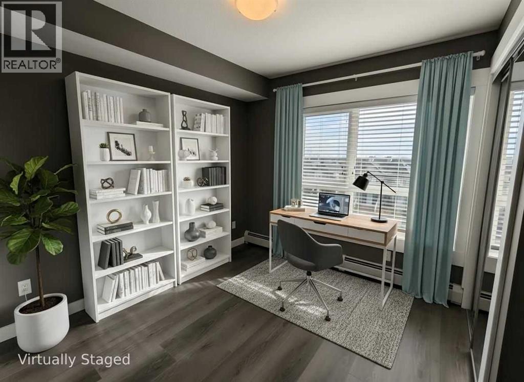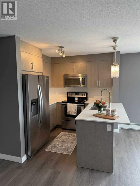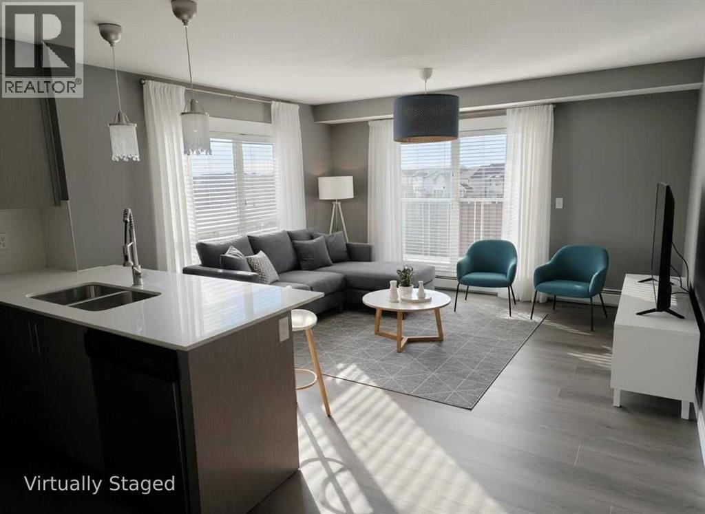 **HUGE PRICE REDUCTION FOR QUICK SALE** Now offered at a new price, this top floor corner unit is a rare opportunity for first-time buyers, young families, or investors, seeking both comfort and spectacular views of the Alberta Rockies and downtown Calgary!Welcome to this bright, and spacious top floor corner unit. With stunning west and north views, enjoy the breathtaking evening sunsets over the mountains.This recently updated condo is perfect for families, professionals, and investors. Featuring two bedrooms, two full bathrooms, 1 above ground titled stall and 1 heated underground titled stall with additional storage. The entryway welcomes you with a storage area and coat closet. Further ahead is a built in desk area. Beside the desk is a tiled laundry room with full size stacked Whirlpool front load washer dryer. To your right, the hallway continues and brings you to the first full four piece bathroom, beautifully tiled and ready for your guests. To the left is the first bedroom, right-sized for your growing family or as a home office. Straight ahead and you will find the dining area leading into the peninsula kitchen, featuring stainless steel Whirlpool appliances. Further ahead is the spacious living room for all your entertaining, sports games, and family movie nights. Off the family room facing North West is a beautiful balcony where you can enjoy the gorgeous morning views of downtown Calgary and stunning Alberta sunsets over the Rockies. To the right of the living room is a large main bedroom with a walk through closet into your four piece tiled ensuite. Located in Skyview Ranch, steps from shops and schools with easy access to Stoney Trail, Crossiron Mills, and Calgary International Airport. Don’t miss this fantastic opportunity - schedule your showing today! (id:6769)