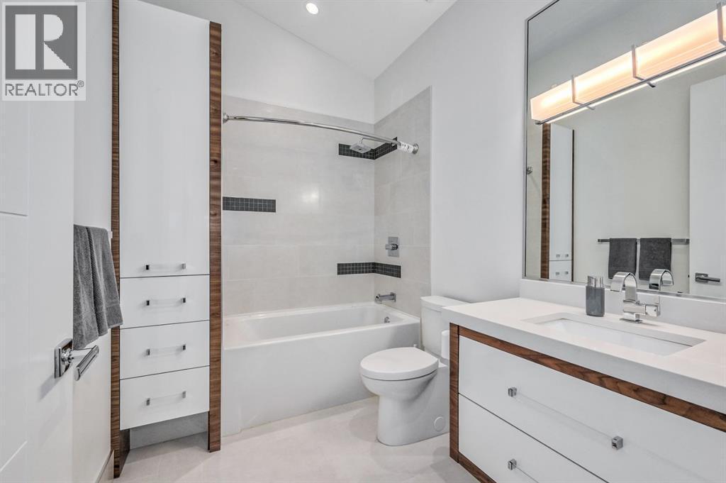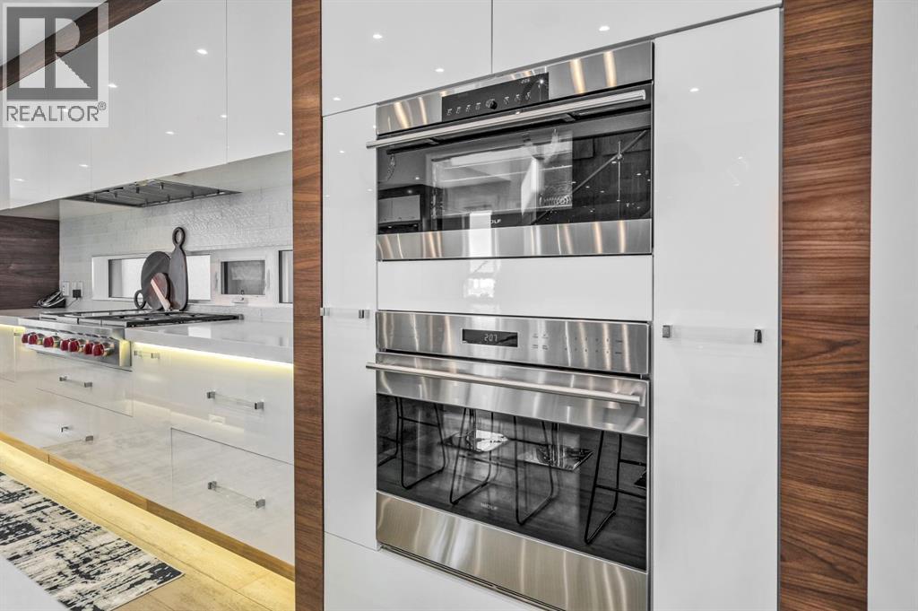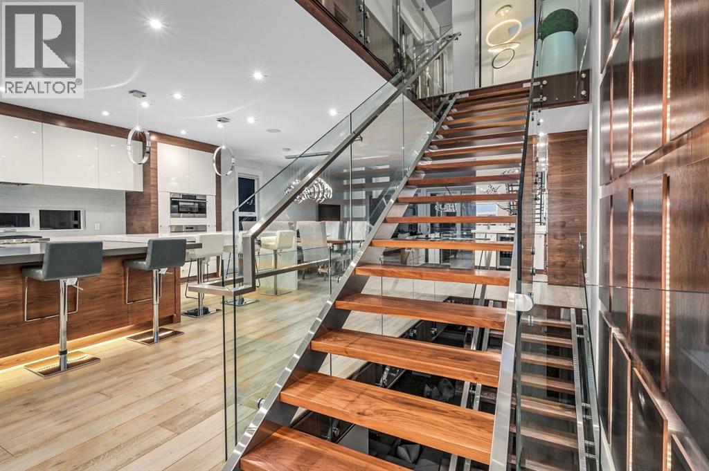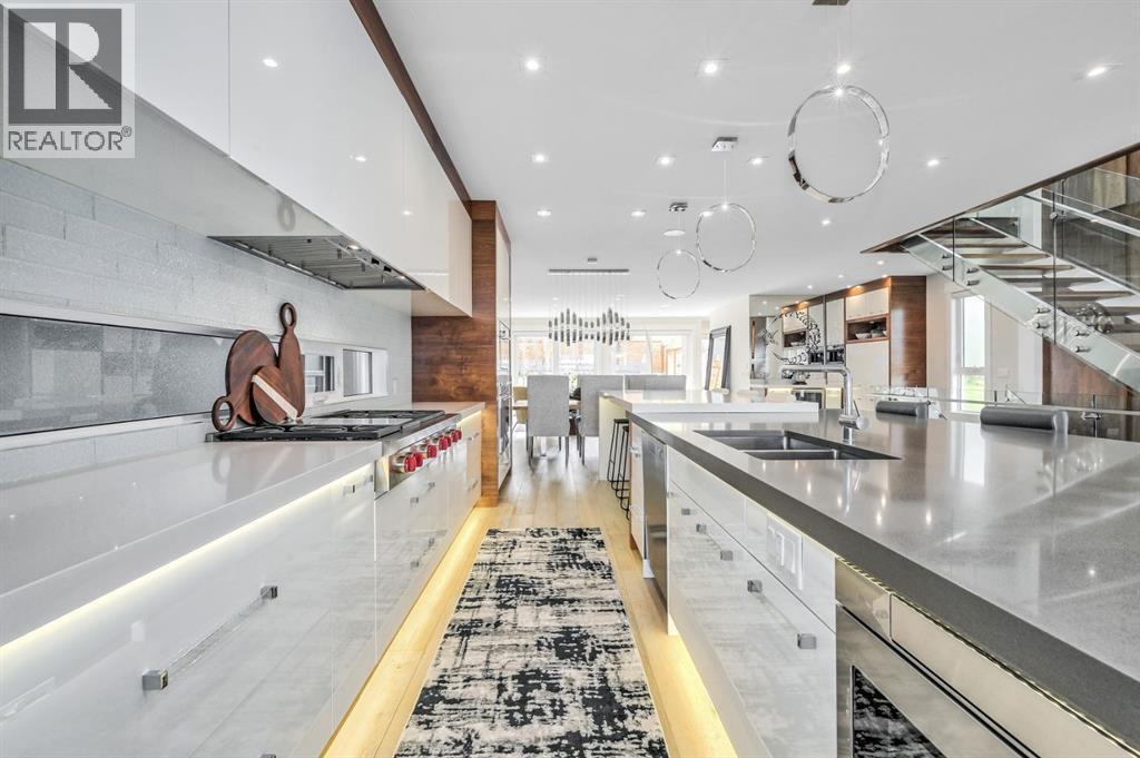 Located in Winston Heights. Welcome to a thoughtfully designed residence that seamlessly blends luxury, comfort, and timeless elegance. This stunning home features an open-concept layout, soaring 10-foot ceilings, and ambient LED lighting throughout — creating a warm and inviting atmosphere for both everyday living and upscale entertaining.At the heart of the home lies a chef’s dream kitchen, outfitted with premium Wolf appliances and a custom extended waterfall island with returns — ideal for hosting large gatherings or family get-togethers. Adjacent to the kitchen, a stylish wet bar includes a built-in Wolf coffee maker and sits beside a cozy second family room. Enjoy your morning coffee with the fresh breeze flowing in from the expansive rear sliding doors.Design details elevate every corner of this home, including a custom solid wood staircase paired with a matching feature wall, premium light fixtures, an Ortal 150 fireplace, LED accent lighting, and extensive custom woodwork — a cohesive design theme carried throughout all levels.Upstairs, the primary suite is a true retreat, featuring vaulted ceilings, an open-concept layout, a spacious walk-in closet, and a spa-inspired 5-piece ensuite. Each of the three additional upstairs bedrooms includes its own ensuite and unique charm — perfect for growing families or hosting guests without the hassle of shared bathrooms.The lower level offers even more space, including a generously sized living room with a second wet bar, a guest bedroom complete with built-in desk, and a full 3-piece bathroom — ideal for visitors, teens, or a private home office setup.Practical touches include a heated, insulated garage with custom storage cabinetry, and a beautifully landscaped backyard featuring Manitoba rock retaining walls, cedar fencing, Swedish Aspens, and an automatic drip irrigation system.Located in a highly desirable area, this home is walking distance to the Winston Golf Course, scenic walking/biking trails, off-leas h parks, and Georges P. Vanier School (Grades 6–9). Enjoy quick access to major roadways, downtown Calgary, SAIT, Foothills Hospital, and the airport — convenience without compromise.Don’t miss the opportunity to own this rare and remarkable home. Call your favourite realtor and book your private showing today! (id:6769)
