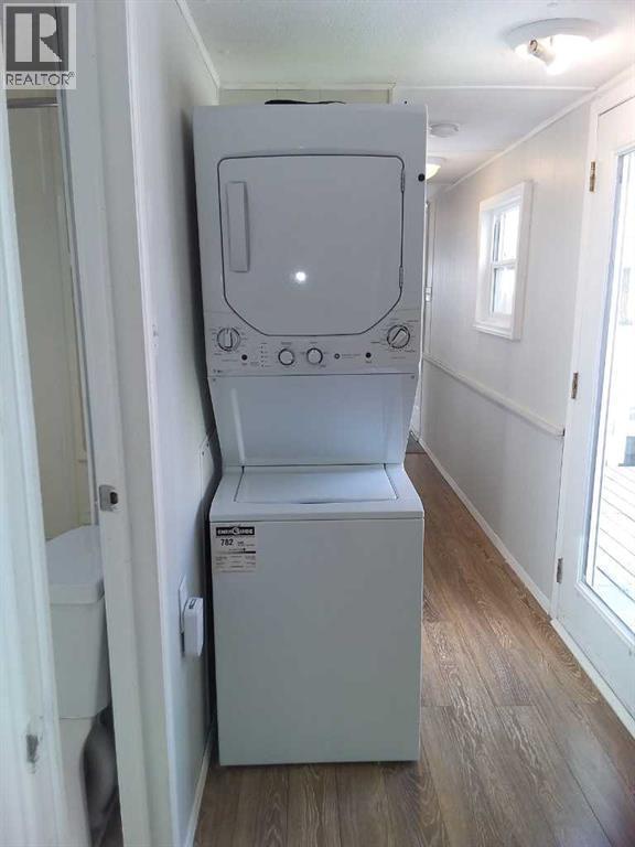 Affordable living at its best! Priced right and available immediately! This home features a nice kitchen with updated cabinets, a bright living / dining area with windows on three sides. All vinyl windows plus laminate flooring with carpet in the bedrooms. It is best suited to a single person or couple due to its size. The living area includes 2 small bedrooms and a laundry area in the hallway. Appliances included are a fridge, stove and a laundry set. Some flooring may need to be replaced, but overall, it is in good condition. The exterior is vinyl siding and skirting and the level yard has a large shed for additional storage. 2 parking stalls in front. This unit is located a short distance to the clubhouse which features a community gathering area with kitchen, a modern exercise room, an 8-ball pool table and games room plus common area playground and bbq area. Calgary Village is a quiet, family friendly community. (id:6769)