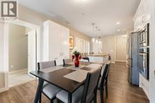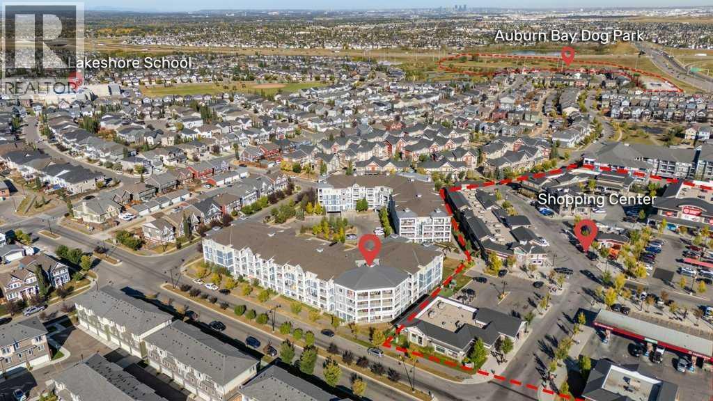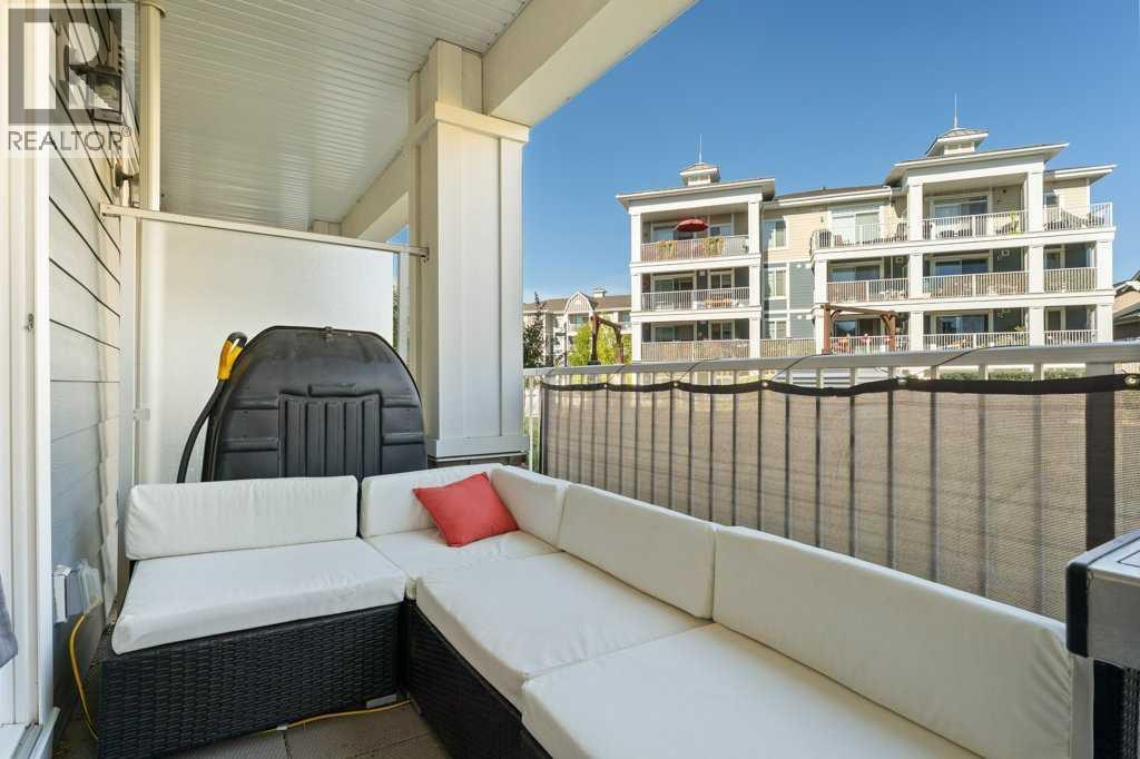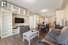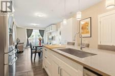 Welcome to this executive 2-bedroom, 2-bath condo in the desirable lake community of Auburn Bay! This superior Muskoka main floor corner unit is the largest floorplan in the building’s design, and with 9-foot high ceilings, it offers a spacious, light-filled layout that truly stands out. This Condo is perfect for those who are looking to downsize without compromising space and storage. From the moment you step inside, the large foyer sets the tone with plenty of room to welcome family and guests. The luxury vinyl plank flooring flows seamlessly into the beautifully upgraded kitchen, featuring an oversized quartz island with farmhouse-style undermount sink—perfect for extra seating and casual dining. The kitchen is a chef’s dream with: upgraded stainless steel appliance package (including built-in wall oven & microwave), Ceramic cooktop range with hood fan, refrigerator with water line, 42" upper cabinets, pot drawers & under-cabinet lighting, and Bonus extra cabinetry on the opposite wall. The bright, modern color palette makes this space both functional and stylish. There’s also plenty of room for a full dining table, so you don’t have to compromise on entertaining. The spacious living room is enhanced with custom shelving and cabinetry for storage and a perfect TV nook. From here, step out onto your expansive covered patio with a gas BBQ line—ideal for year-round outdoor enjoyment. The primary suite is a true retreat, benefiting from corner-unit windows that flood the room with natural light. The spa-inspired ensuite features: Dual undermount vanities with quartz counters, Walk-in glass shower with full-height designer tile and walk-in closet for ample storage. The second bedroom is bright and versatile, with a cheater door to the second full bathroom, which boasts matching quartz counters and upgraded finishes. Also included is your own in suite laundry with full sized stacked washer and dryer, (1) Titled underground heated parking stall, an assigned stora ge locker conveniently located right in front of your parking spot, plenty of visitor parking. Best of all, this building is PET FRIENDLY and just steps to shops, groceries, dining, and more. Plus, as part of the Auburn Bay community, you’ll enjoy exclusive year-round lake access—swimming, skating, paddleboarding, or simply relaxing at the beach. This rare floorplan doesn’t come to market often—don’t miss your opportunity to call it home! (id:6769)