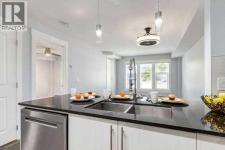 Living at the lake in Mahogany provides a lifestyle that everyone loves and can enjoy all year long. Grab your book and your lunch and escape to the lake for an hour or take the children after school for playtime before dinner and bedtime, or maybe a skate with friends and neighbors during the winter months. This great two-bedroom Condo checks all the boxes. Ideally located on the main floor, near the front entry and the elevator and not far from the parking stall. Featuring huge windows that brings in lots of natural light, freshly painted walls, new Luxury Vinyl plank flooring and upgraded lighting, including two ceiling fans plus granite counter tops with undermount sink, designer backsplash and stainless-steel appliances give you a classy modern place to call home. This bright open floor plan offers two good-sized bedrooms, the primary bedroom with huge windows overlooks the patio, the 2nd bedroom is great for guests or a home office and both bedrooms have full-sized closets. The 4-piece bathroom has tile floor, shelving above the toilet and a vanity with large vessel sink. The well-planned u-shaped kitchen overlooks the large living area, has lots of counter space, a flush eating bar and pantry. In-suite laundry with stacking washer and dryer. The good-sized patio with stone columns and gas line to BBQ, is accessed from the living room and is convenient to visitor parking making it easy for your visitors to stop by and is away from the main road. This great location is within walking distance of the lake, all the shopping and dining experiences you could want are very close by, plus South Health Campus for medical appointments, the car wash, your favorite ice cream parlor, parks and playgrounds and walking paths and so much more. Easy access to downtown and all major roads. This Condo is vacant and ready for a quick possession, book your showing today! (id:6769)