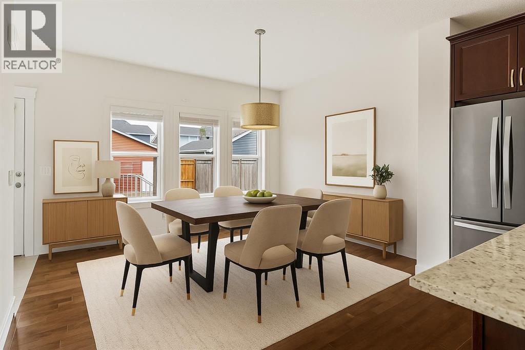 This beautifully maintained semi-detached home is fully move-in ready and just minutes from countless amenities. Located in the desirable community of Redstone, this ideally situated property offers 3 bedrooms and 2.5 bathrooms, perfectly balancing style and functionality. It’s an excellent fit for a young couple, investor, or professional looking for both comfort and convenience. At the front entry, a covered porch provides the perfect spot to enjoy your morning coffee or tea. Inside, the main level features an open-concept layout with 9-foot ceilings and rich hardwood flooring flowing throughout the main living areas. The spacious front living room features a wall of south-facing windows, filling the home with natural light from morning to evening. The kitchen is thoughtfully positioned between the dining and living areas, making it ideal for entertaining guests or keeping an eye on young children. The timeless kitchen includes rich wood cabinetry with crown moulding, granite countertops, a subway tile backsplash, a suite of stainless-steel appliances, a large island, and a spacious pantry. At the rear of the home, the dining room overlooks the deck and backyard, offering ample space to host large dinners. A 2-piece powder room and a convenient rear mudroom complete the main level. Upstairs, the home features 3 bedrooms and 2 full bathrooms. The generous primary suite is complete with a 3-piece ensuite featuring a walk-in shower, as well as a large walk-in closet. Two additional bedrooms, a full bathroom, and an upper-level laundry area provide added comfort and functionality for daily living. The lower level offers endless potential for future development, with space for a 4th bedroom, family room, and bathroom. The private backyard is fully fenced and landscaped, providing plenty of green space for family enjoyment. A large deck offers the perfect setting for summer barbecues and entertaining. Completing the property is a brand-new double garage (2025), accessed by a paved alleyway, ensuring vehicles and belongings remain clean and secure year-round. This well-cared-for home has also received a full exterior update in 2025, including new siding, roof, fascia, and eaves, offering peace of mind for years to come. With possession available before the end of the year, this property is ready to welcome its next owners. (id:6769)