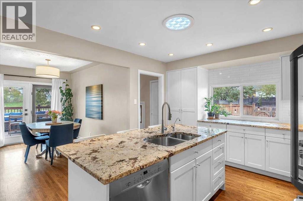 Welcome to 3 Walnut Dr. SW, a beautifully updated family bungalow perfectly situated on a desirable H-GO zoned corner lot in Calgary’s sought-after Wildwood community. Combining timeless charm with modern upgrades, this home offers the ideal balance of a quiet community focussed lifestyle and easy access to downtown and the mountains.Step inside to discover refinished original hardwood floors that flow through a bright and inviting main level. The open-concept living and dining areas connect seamlessly to the renovated kitchen, complete with granite countertops, a central island with bar seating, a gas range, under-cabinet lighting, and a built-in water filtration system, perfect for everyday family living and entertaining.The home features four bedrooms and two full bathrooms (three bedrooms up, one down), giving families flexibility for growing needs, guest space, or a home office. The lower level extends your living space with a cozy wood-burning stove, a large storage room, and the comfort of an on-demand water system, water softener, and high-efficiency furnace.Outdoors, the west-facing backyard is a true retreat. Enjoy evenings on the multi-tiered deck shaded by mature trees, gather around the firepit, or tend to garden boxes. A shed and a double back gate to the alley add convenience, while the oversized single detached garage - heated with both electric and wood stove, and outfitted with shelving and workbenches - makes an excellent workshop.Families will love the location: walk to Wildwood Elementary, Vincent Massey Junior High, and St. Michael School. Explore nearby Edworthy Park, Douglas Fir Trail, and the Wildwood Community Association amenities including tennis, pickleball, skating, and community gardens. Commuting is simple with bus routes and the C-Train nearby.This is more than a home, it’s a lifestyle. Friendly neighbors, community block parties, and quick access to both the city core and the mountains make Wildwood one of Calgary’s most belove d communities. (id:6769)