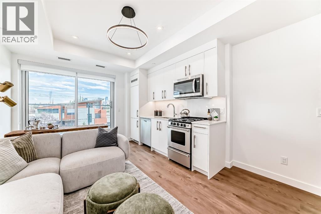 Discover this 1-Bed, 1-Bath home in Truman’s newest boutique development, ideally located in the heart of vibrant Kensington. The sleek kitchen features quartz countertops, full-height cabinetry, and stainless steel appliances, flowing seamlessly into a bright, open-concept living area with floor-to-ceiling windows. From here, enjoy peaceful views of Kensington’s charming streetscape, offering a private urban retreat. The contemporary bathroom showcases clean, high-quality finishes, while residents benefit from boutique-style amenities including an outdoor terrace, fitness centre, co-working spaces, and secure bike storage. Just steps away, you’ll find cafés, restaurants, shopping, river pathways, the LRT, and all that downtown has to offer. *Photo gallery of similar unit. (id:6769)