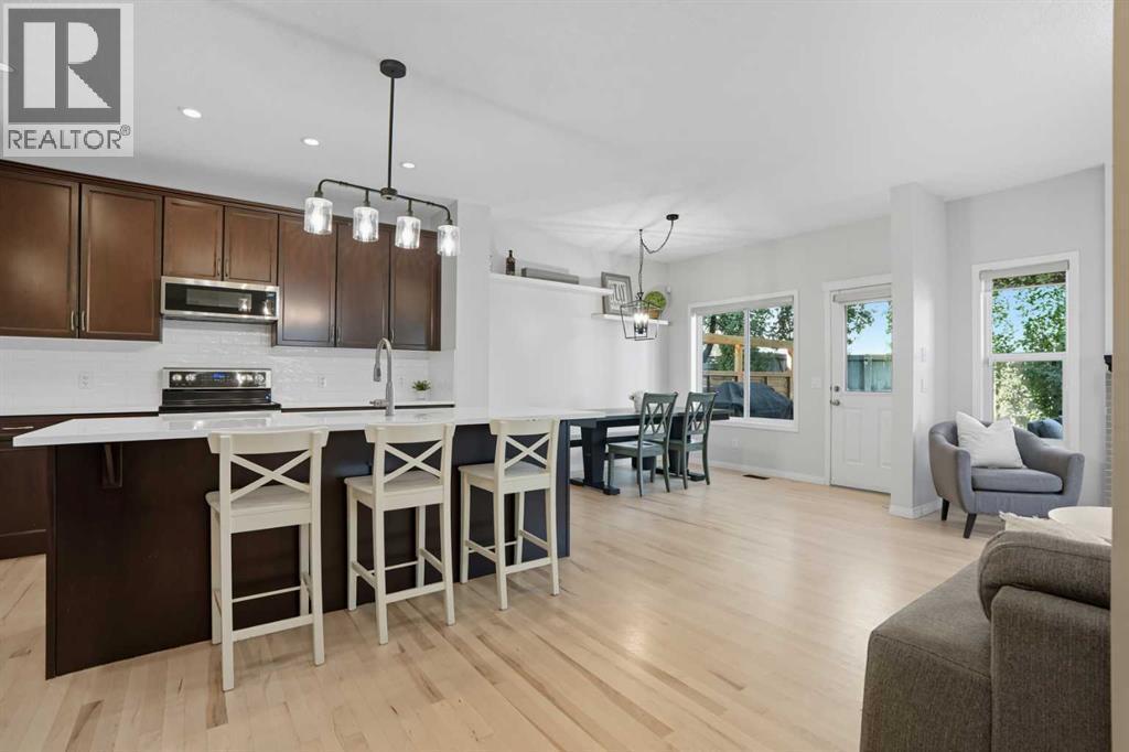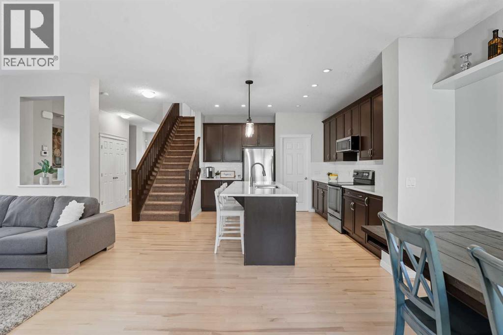 Welcome to this 4 bedroom, 4 bathroom, FULLY FINISHED home in the sought-after community of Kincora. This home is situated on a pie-shaped lot, backing a walking path and only a short drive to all the amenities you need. This home offers pride in ownership and you will not be disappointed with the functional layout. Walk inside and be greeted by a large entry with a built-in bench and stunning hardwood floors. The OPEN FLOOR plan features a cozy living room with a gas fireplace and mantel and a recessed space perfect for the TV. The Dining room is spacious and connects to the Kitchen. The kitchen is truly the heart of this home with a massive island with white QUARTZ counters, plenty of cabinets, plus a walk-through pantry with more cabinets and counter space. The pantry connects to the boot room right off the DOUBLE ATTACHED GARAGE and again offers even more storage. Upstairs you will find at the top of the stairs two well-sized bedrooms both with WALK-IN CLOSETS, a 4 piece bathroom with matching quartz counters, and a walk-in LAUNDRY ROOM with even more built-in storage! There is a large west-facing BONUS room with built-in cabinetry and the PRIMARY BEDROOM is tucked away with a 5 piece ENSUITE and WALK-IN CLOSET! The basement is professionally finished by the builder and features a large Family room with a built-in WET BAR, a FULL 4 piece Bathroom and a 4th Bedroom, plus there is tons of storage! The backyard is well-manicured with a tree line, a Composite Deck, and privacy walls, there is space and hookups for a hot tub, a Central AIR CONDITIONER, plus plenty of room for the kids and dogs to still play and run, the back fence also has access to the walking paths backing the property. This home offers both pride in ownership and a thought-out functional layout. New roof and siding too! Book your showing today! (id:6769)