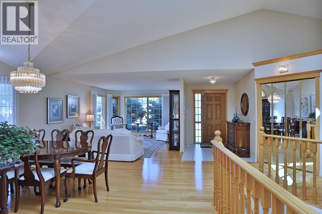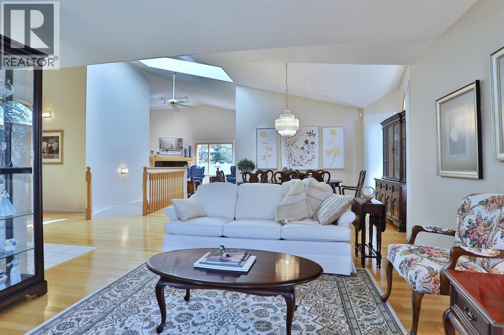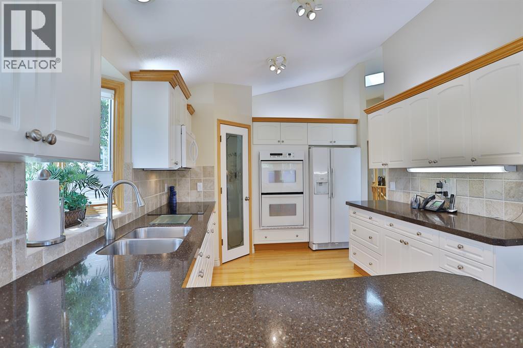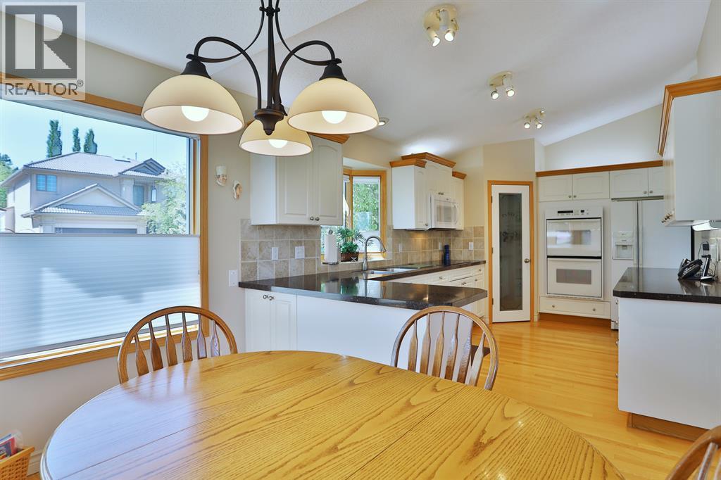 Backing onto a park in exclusive Hamptons Square is where you’ll find this beautifully maintained home in the highly-desirable golf course community of the Hamptons. Built by Calbridge on this wonderful corner lot, this mint condition walkout bungalow enjoys gleaming hardwood floors & skylights, 4 bedrooms & 3 full bathrooms, renovated white kitchen with granite countertops & fabulous walkout level with sensational enclosed patio. You will just love the warm & inviting design of the air-conditioned main floor with its expanse of vaulted ceilings & windows, featuring the West-facing living room with wraparound windows, open concept formal dining room with bay window & sun-drenched family room with new fireplace (2022). The beautiful updated kitchen has granite counters, walk-in pantry & the upgraded appliances include cooktop stove, double built-in convection ovens & Bosch dishwasher. Two bedrooms & 2 full baths on the main floor highlighted by the private owners' retreat with large walk-in closet & jetted tub ensuite with heated floors, skylight & separate shower. The 2nd bathroom - also with heated floors, is conveniently right across from the 2nd bedroom. The walkout level is finished with 2 big bedrooms, full bath with oversized walk-in shower, huge open games/rec room with fireplace & fabulous enclosed patio with access onto a 2nd patio in the private treed backyard. Main floor laundry room complete wit sink, lots of closet space & Bosch washer & dryer. Additional features & extras include Hunter Douglas blinds, NEST thermostats & CO/smoke detectors, motion & hue lights, underground sprinklers, heat lamps in the main & walkout bathrooms, oversized 2 car garage with built-in cabinets & central vacuflo system with 3 hoses (2 for the house & 1 for the garage). Other improvements: clay tile roof (2022), renovated bathrooms with quartz counters (2015), hot water tank (2019), both furnaces (2017), water softener (2014) & window glass (2017). Prime location within walk ing distance to bus stops & tennis courts, only a few short minutes to shopping at Hamptons Co-op & Edgemont Superstore, plus quick easy access to Nose Hill Park, Crowfoot Centre & LRT, major retail centers, University of Calgary, hospitals & downtown. (id:6769)