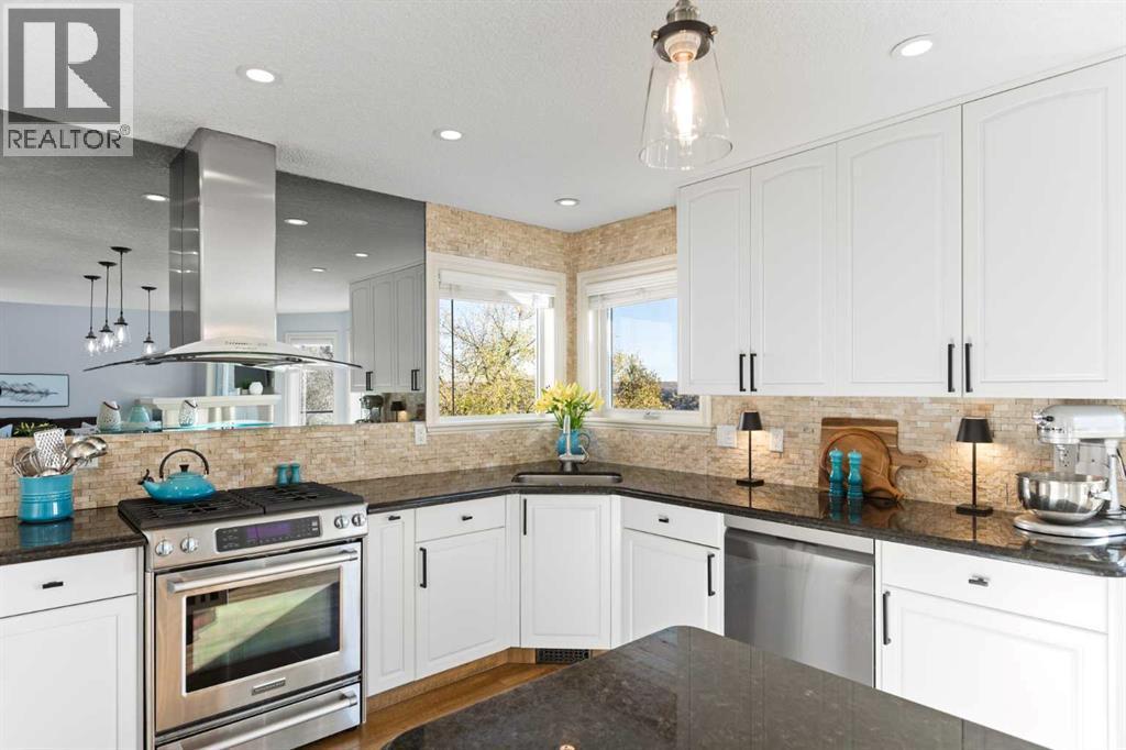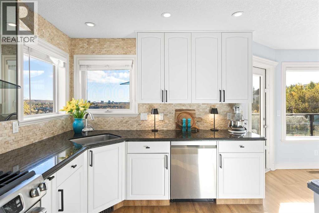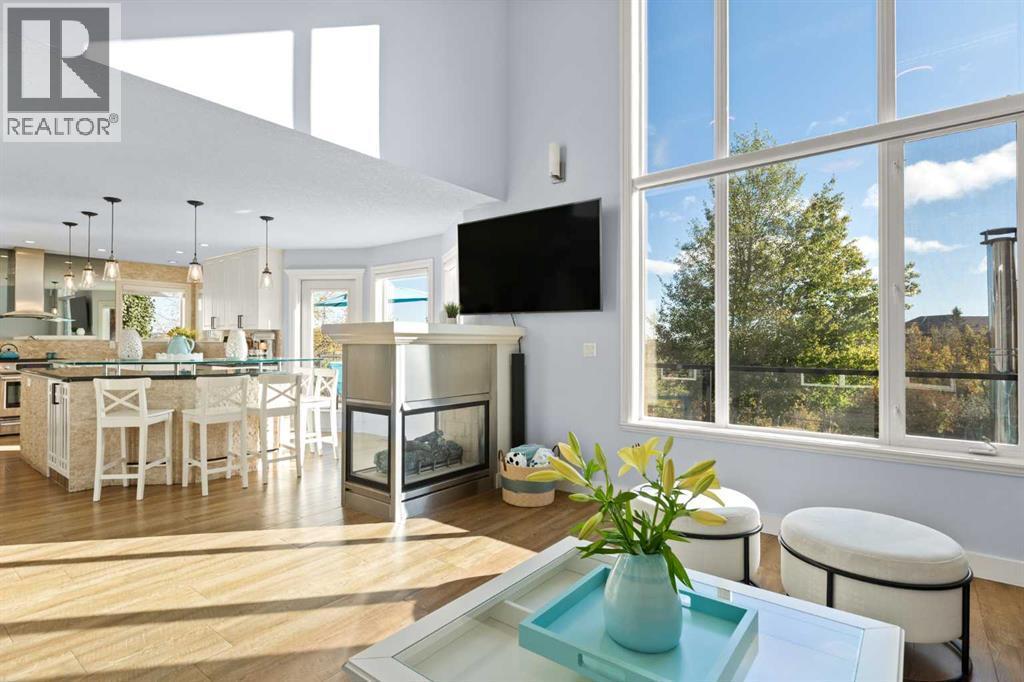 Nestled among the rolling hills of Patterson, this stunning 5-bedroom, 3.5 bath executive home combines elegant design, smart technology, and resort-style amenities—perfect for the modern family.As you enter the grand foyer, you’re greeted by a tranquil spa-inspired water feature, setting the tone for the sophistication that follows. The main living area boasts soaring 17’ ceilings, a cozy gas fireplace, and vinyl plank flooring throughout, creating an airy and inviting atmosphere. The gourmet kitchen is a chef’s dream, featuring granite countertops, a large entertaining island, built-in fridge, and gas range. Step outside to the massive deck, fully updated in 2024, where you can take in sweeping views of Calgary’s skyline. Adding to the functionality of the main floor are a formal dining room, front sitting room/office, and laundry/ mud room area - that leads into the attached oversized double garage.Upstairs, the primary suite offers true luxury—complete with a private balcony, a gorgeous ensuite featuring a Jacuzzi tub, heated floors, double vanity, stand-up shower as well as a generous walk-in closet. Two additional bedrooms, a loft area ideal for a home office, and another full bathroom with heated floors complete the upper floor.The fully finished walkout basement is an entertainer’s dream, featuring a second gas fireplace, two more bedrooms, a full bathroom, and even a kitchen area for hosting epic movie nights or game days with friends and family. The newly built flex/workout room includes rubber flooring and is pre-wired for a hot tub.Step outside to your own backyard paradise—a professionally landscaped oasis designed by an architect, featuring a 16’x32’ heated in-ground pool surrounded by stamped concrete decking, custom lighting controlled by app, and a retractable Elephant Cover for safety and convenience. Enjoy your favorite music indoors and out with the fully integrated sound system across all levels, and relax in the covered outdoor living a rea with a dual wood/gas fireplace and built-in Weber BBQ. There is also a gas hook up for a fire table. This home is move-in ready with new exterior finishes, solar panels reducing energy costs by approx. $300/month, programmable Gemstone lighting, in-ground irrigation, central A/C, central vac, two furnaces, two hot water tanks, water softener, keyless smart entry on all doors, and a new garage door (2024).Every inch of this home has been thoughtfully curated to deliver comfort, elegance, and entertainment—all with breathtaking views of the Bow River and Calgary’s west side. Move-in ready and built for making memories. (id:6769)