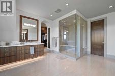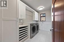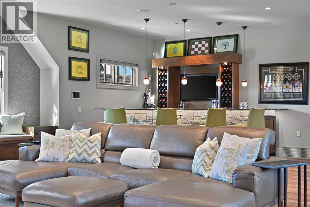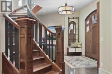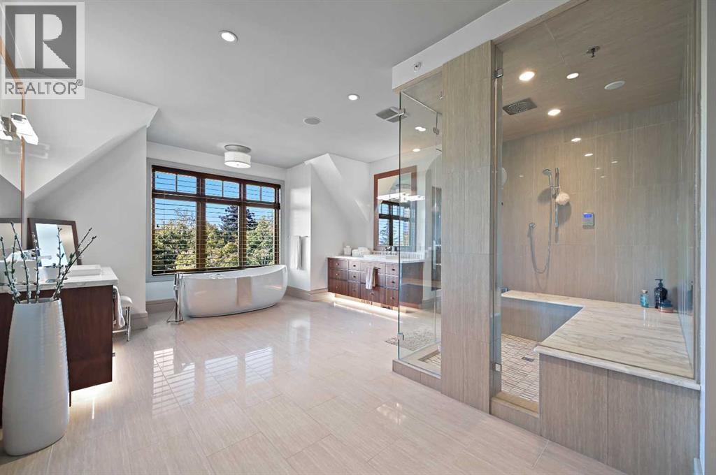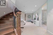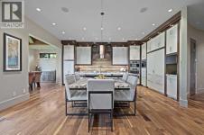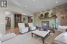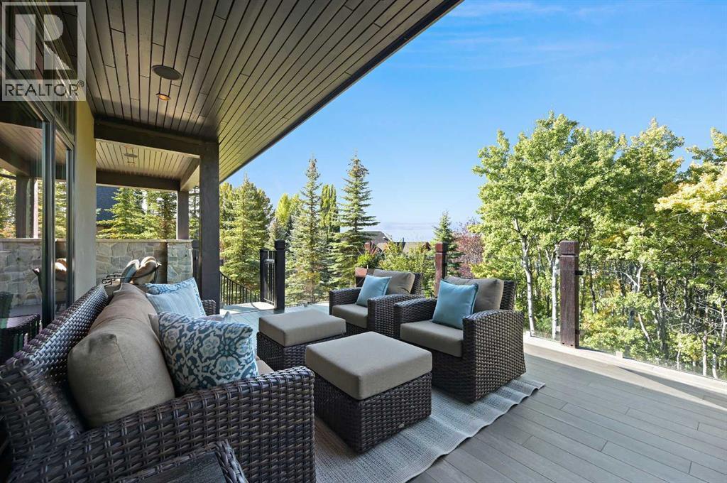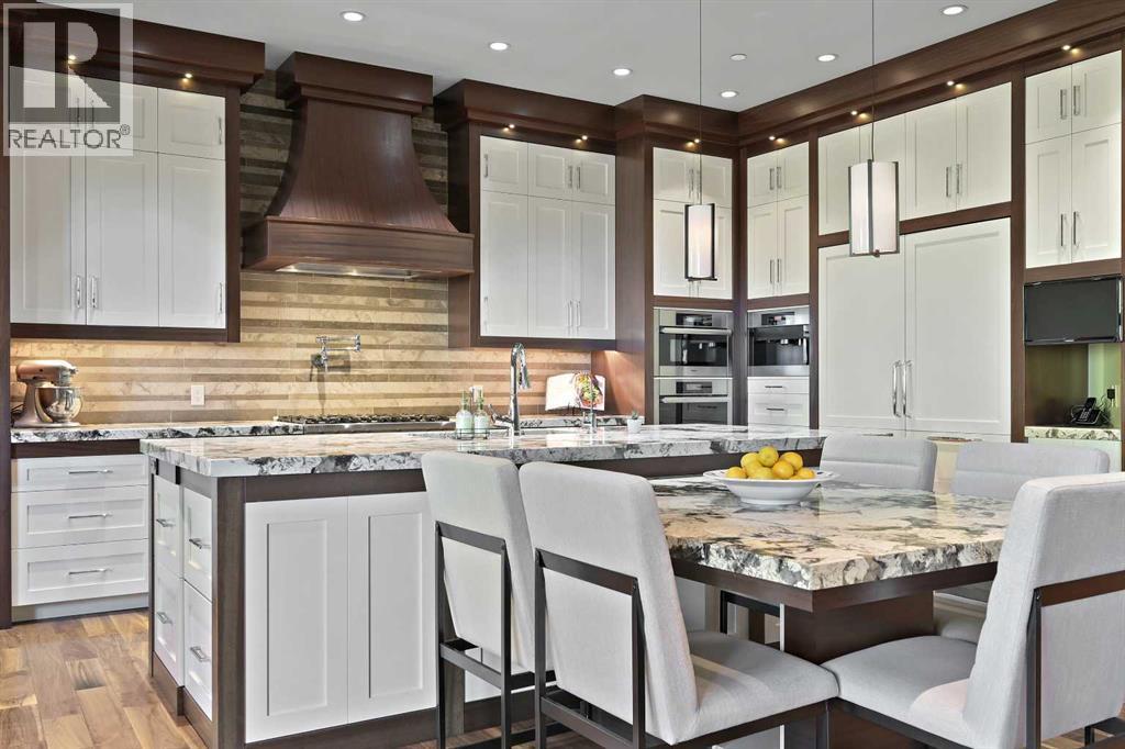 Nestled within the prestigious enclave of Springbank Valley Heights, this exceptional custom-built estate embodies understated luxury and timeless sophistication.Spanning over 7,500 square feet of exquisitely designed living space on a 12,604 sq. ft. lot, every detail of this residence reflects a deep commitment to craftsmanship and elegance.The stately stone exterior and charming front veranda create a distinguished first impression, while the grand foyer—with its sweeping curved staircase and polished hardwood floors—sets the stage for the refined interiors beyond. Designed for both culinary excellence and intimate entertaining, the gourmet kitchen features professional grade Viking and Miele appliances, including a gas range, an additional speed oven that doubles as a microwave, espresso machine, triple dishwashers, and a large double Sub-Zero fridge that complements the kitchen’s exceptional functionality.Granite countertops and custom cabinetry elevate the space, while the great room exudes warmth and sophistication, showcasing a custom granite stone fireplace that creates a “Chic Chalet” ambiance reminiscent of an upscale mountain retreat—perfect for gathering and relaxation. This space flows into the adjacent dining room, distinguished by its vaulted ceiling with custom wood inlay and uninterrupted ravine views—an inspiring setting for hosting or intimate evenings, framed by expansive windows that open to a serene west-facing backyard. Outside, an inviting new tile patio with a built-in BBQ and wood-burning fireplace creates a seamless extension of the home—ideal for alfresco dining and evening conversation as the sun sets over the ravine. A private home office with custom millwork provides a peaceful retreat for productivity, while the heated triple-car garage with its own furnace offers direct access to a spacious media lounge complete with wet bar, two-piece bath, and home theatre setup. Upstairs, the primary suite is a sanctuary of calm with a spa-inspire d 6-piece ensuite featuring a steam shower, dual vanities, and a meticulously designed walk-in closet.Two additional bedrooms, each with private ensuites, are complemented by a full upper-level laundry room for convenience. A second laundry area on the main level adds thoughtful functionality.The walkout lower level caters to wellness and leisure, showcasing a training pool enclosed in glass-a space that feels like a private spa, complete with bar fridge and freezer drawers, alongside a fully equipped fitness room and two additional bedrooms, each with a full bath.Thoughtfully appointed with in-floor heating, triple furnace systems, and a comprehensive fire suppression system, this residence offers a rare combination of advanced safety, comfort, and timeless style.Privately positioned against the ravine and just minutes from Aspen Landing and Stoney Trail, this is more than a home—it is a statement of enduring quality, designed for those who appreciate refinement, privacy, and elegance in every detail. (id:6769)