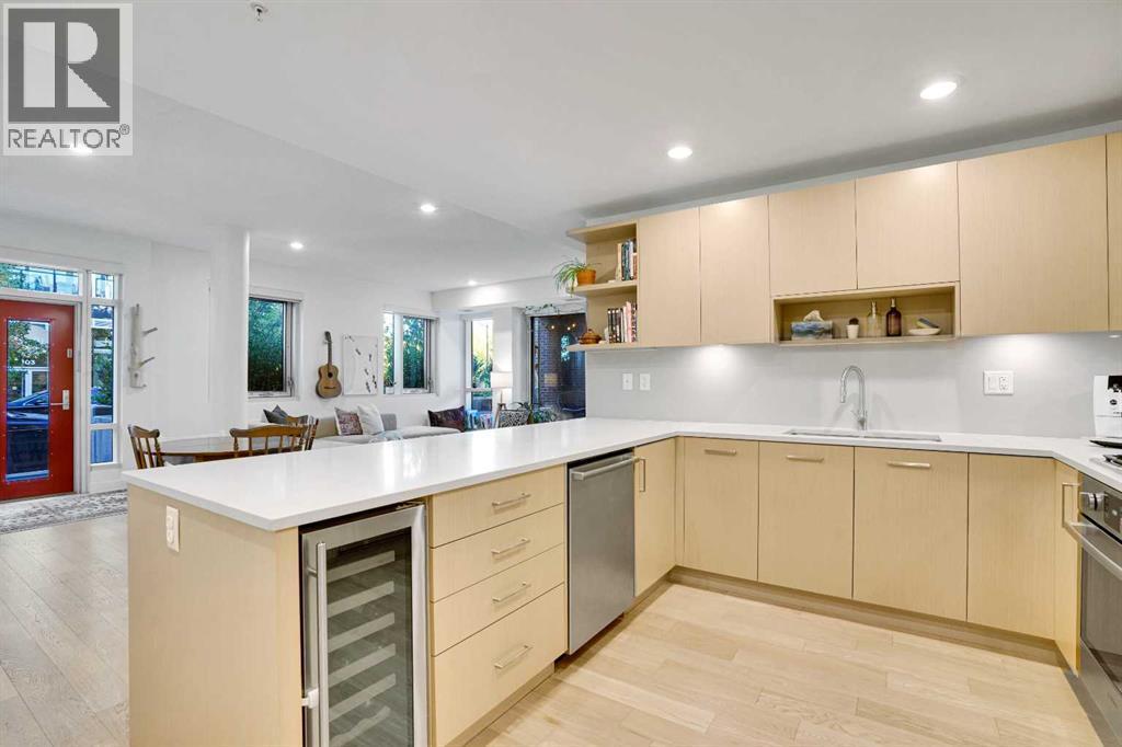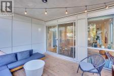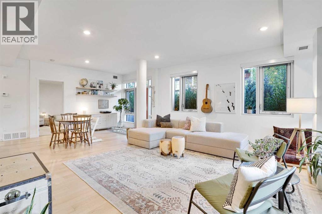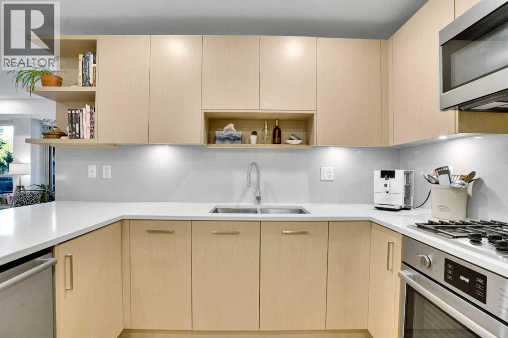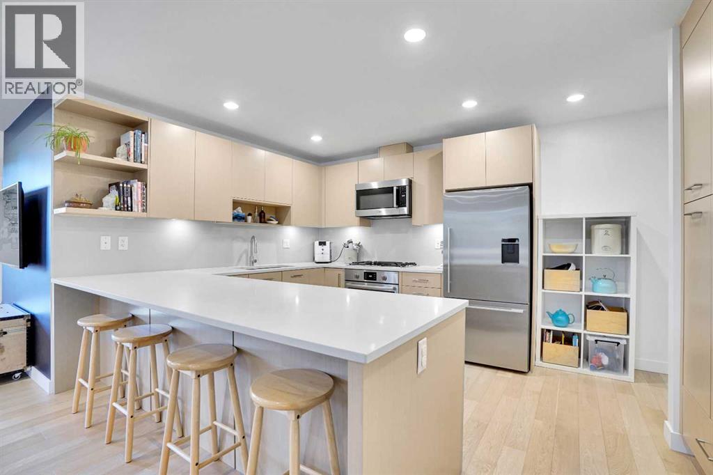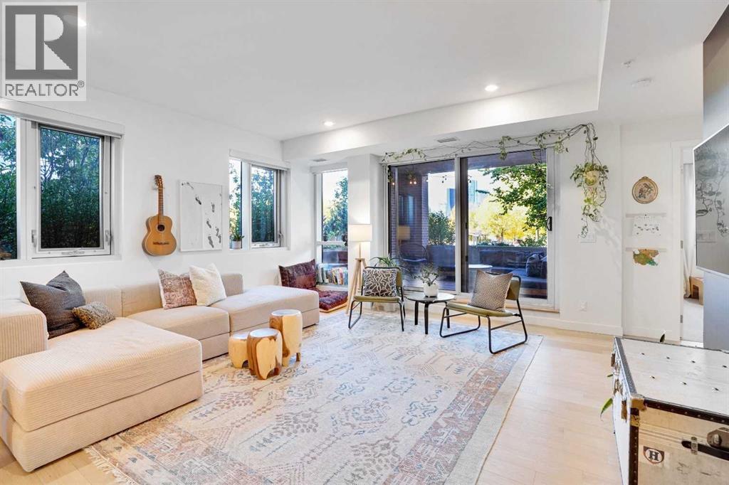 Exceptional opportunity in an ultimate inner-city location. Nestled park side in the heart of Bridgeland, across from Murdoch Park. Like new, corner unit with direct access features a great contemporary vibe. Open concept, spacious rooms and a great covered patio with lovely views of the Park and Downtown. Living is easy in this fresh and bright 2 bedroom plus den with 2 full baths. Enjoy hardwood floors, big beautiful windows, a sunny living room, large dining room and an airy kitchen with plenty of natural light. Upscale kitchen featuring quartz countertops, upgraded appliances, gas stove, pantry and a breakfast bar that comfortably seats four. Enjoy one of the largest patios in the building for your outdoor living space. A soothing color palette throughout creates a sense of balance and harmony. Radius is a concrete building with LEED platinum status offering superb soundproofing and sustainable operating costs. Amenities included in your condo fee are a concierge, a main gym, weight room, package delivery room, yoga studio, spin room, bike and ski workshop, dog wash, car wash bay, incredible roof top terrace with a BBQ area, an outdoor fireplace plus private garden plots. Other notable conveniences include underground parking with two parking stalls and an extra-large storage locker. You will love the vibrant, walkable location, with easy access to plenty of pathways, trails, 10 minute walk to downtown, the Bow River and St Patrick’s Island. Inner city at its best; quiet location, bubbling local restaurant/cafe scene, Farmer’s Market, and shopping. With such a high walking, wheeling, bicycling and transit score it would be a shame to live anywhere else.Bridgeland is proud to be home to some of the best local restaurants and walkable amenities in the city including Shiki Menya, Lil Empire, OEB Breakfast, UNA, Blue Star, Made by Marcus, Village ice cream, Phil & Sebastian, Starbucks, Bridgeland Market, Luke's Drug Mart and Mari bakery. This is inner-city livin g at its best—modern comfort, unbeatable location, and a true sense of community. (id:6769)