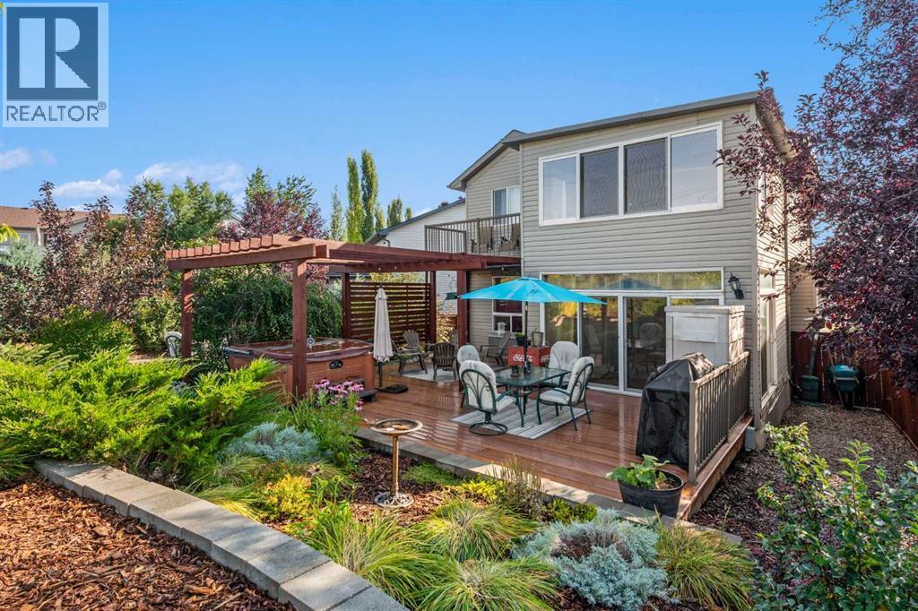 Rare opportunity! Premium Location! Spectacular Mountain Views! Sunny, west rear exposure! Backing onto green space! Garden Oasis setting! Huge pie shaped lot! Shingles replaced 2024! This home has it all! An open concept home with 9'0" main floor ceilings providing over 2800 sq ft of living space PLUS an additional 430 sq ft via a grand , two storey Sunroom accessed from both the Nook & Primary Bedroom. Located in the highly sought after community of Tuscany which includes the Tuscany Club, four schools, parks & pathways, grocery store, cafe, restaurants, parks, LRT, Fire Station etc . Upon entering this home you'll be greeted by a sunny vaulted Foyer with estate railings & tiled floors. As you enter there is a bright, well sized Dining/Flex Room with a second access directly to the Kitchen. As you approach the back the home you get a sense of just how spacious this home truly is. To the right you'll find a well featured Kitchen with eat at entertainment island, loads of upper & lower cabinets offering exceptional storage, large Walk-In Pantry & ample, naturally lit dine-in Nook complete with piano window. The Nook provides access to a spacious main floor, three sides, glass enclosed Sunroom that leads out to your rear garden sanctuary where you'll spend your spring & summer relaxing & entertaining while the kids play mini golf on your very own putting green! This sunny west facing rear yard has an enormous, maintenance free deck complete with a large pergola above. Back inside, across from the Kitchen is a good sized Great Room complete with a warm gas fireplace accented by stone work & wood mantel. The garage entry offers a roomy Mudroom with millwork bench & bright laundry area for side by side washer & dryer. Upstairs you'll find a nice sized, open Loft/Den, adjacent the open Foyer, completed withy a millwork desk & loads of natural light from the large windows & ceiling skylight. Approaching the rear you'll find a King Size, Primary Bedroom with large WIC, & fully featured Ensuite complete with 6' soaker tub. You will enjoy many hours enjoying the Unobstructed Mountain and Bow River Valley views from your second floor Sunroom completed with extensive, sliding patio door like windows & from your second floor veranda which are both accessed from the Primary Bedroom. The second floor is completed by two additional, good sized bedrooms & main bath. Downstairs you be able to keep the kids busy or entertain guests in a spacious Games/Rec Room suitable for Table Tennis, Foosball, Darts, Pool or what ever you desire. The basement is complete with a well sized, finished storage room. The private back yard is beautifully terraced with numerous entertainment spaces, a putting green & highly appointed with a large & extensive variety of perennial plantings, fruit trees, shrubs, and raised gardening boxes all backing onto a linear green space & community pathway. Don't miss your opportunity to own this incredible dream home. Make your showing appointment today! (id:6769)