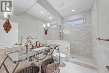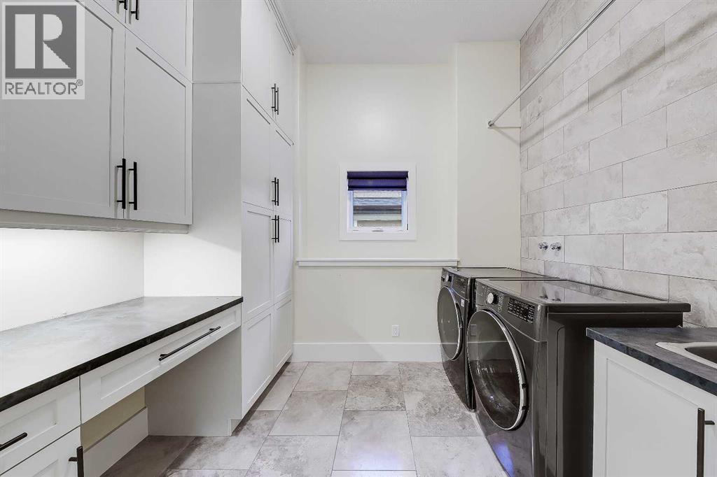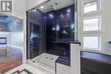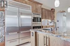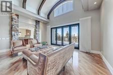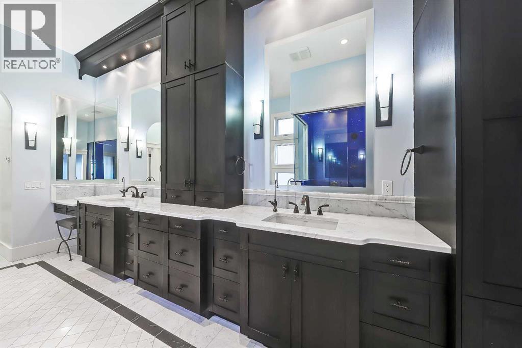 Wake up to sweeping mountain views from this timeless luxury home in prestigious Springbank Hill. Offering nearly 6,200 sq ft of refined living space across all levels, this residence blends classic design with modern comfort on a beautifully landscaped 0.30-acre lot surrounded by mature trees and lush greenery. The grand foyer sets the tone with an 18’ barrel-vault ceiling and Carrara marble floors, leading to a formal dining space with coffered ceilings and a custom stained-glass feature, and an elegant living room anchored by a 2-way fireplace and soaring barrel vault ceilings. West-facing windows frame mountain and community vistas, while French doors extend the living space outdoors to a massive private deck—perfect for evening relaxation or quiet entertaining that is virtually invisible to both neighbours. A gourmet kitchen anchors the home with custom hardwood cabinetry, dual islands, and premium appliances from Wolf, Sub-Zero, and Miele. The thoughtful layout also features a bright and airy breakfast nook and a walk-in pantry. Just off the kitchen is the full laundry room and mudroom that connects to the oversized triple garage. It features epoxy floors, a dog wash, and direct basement access, as well as additional side and front door access. The private main floor primary suite offers a serene retreat with a corner fireplace, private deck access, and a spa-inspired 5-piece ensuite featuring a steam shower, soaker tub, and dual vanities. Plus, a fully equipped walk-in closet features floor-to-ceiling storage for endless organization. Upstairs, a versatile loft with vaulted ceilings, skylights, and a fireplace offers an ideal office, library, or additional bedroom option, complete with its own 2-piece bathroom. The fully developed walkout basement is designed for both leisure and entertaining, featuring a large rec room with custom cabinetry and a wet bar, a dedicated home theatre and with some imagination, could be converted into a full-scale golf simulator! The basement also has two oversized bedrooms with private ensuites and walk-in closets. The basement also features a Tuscan-inspired full bath, perfect for showering off from the included hot tub. Outside, mature landscaping creates a private, forest-like setting, putting green, featuring a west-facing upper deck, a walkout lower patio with a hot tub, and a full-size putting green—all surrounded by stone accents and ambient lighting. Additional highlights include four fireplaces, in-floor heating, a Kinetico Water System throughout, dual central A/C, dual water tanks, high-efficiency systems, integrated home automation and security, and a durable clay tile roof. Every element reflects exceptional craftsmanship and enduring quality. Located moments from Aspen Landing, top-rated schools, and major routes, this home combines elegance, comfort, and convenience. Rarely does a residence with such commanding views and thoughtful design become available—experience the best of Springbank Hill living today. (id:6769)
