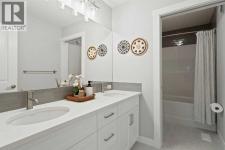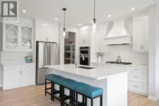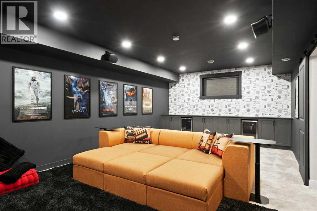 WELCOME HOME! Looking for an elevated lifestyle experience? Your opportunity is here! Nestled in the prestigious Riverstone in Cranston, this executive 2 storey home offers over 3620 sq. ft. including a fully developed basement, all backing onto complete privacy with no neighbours or pathways behind. Situated on a quiet cul-de-sac surrounded by untouched green space, this is a rare setting where luxury and nature meet. From the moment you enter, a wall of windows along the rear of the home frames uninterrupted greenspace views, filling the interior with natural light. The main floor boasts 9’ ceilings, luxury vinyl plank flooring, and a seamless open-concept design. The chef’s kitchen is a masterpiece featuring ceiling-height cabinetry, quartz countertops, a herringbone backsplash, premium stainless steel appliances including a wall-mounted oven and gas cooktop, a massive island with breakfast bar, and a walk-through pantry. The dining and living areas blend beautifully, complemented by a tile-surround gas fireplace, while a front flex room provides the perfect home office. Upstairs, the wrought-iron staircase leads to a bonus room overlooking the backyard views, along with 4 spacious bedrooms. The primary retreat is a true sanctuary with a spa-like ensuite offering dual sinks, quartz counters, a glass shower, and a freestanding soaker tub. The upper level is completed by a designer laundry room with built-ins, front-load appliances, and decorative tile flooring. The professionally developed basement with 9’ ceilings is designed for an elevated lifestyle. A private theatre room with custom built-ins and bar fridges creates the ultimate entertainment zone, while the glass-enclosed home gym with professional flooring offers a space to recharge. Off the gym, you’ll find a private wellness retreat featuring a full sauna and steam shower, creating the ultimate at-home escape! Modern comforts extend throughout the property, including full central air conditioning, a smart lighting package in the basement, and an impressive Gemstone exterior lighting system that elevates the home’s curb appeal year-round. Outdoors, the escarpment is your personal backdrop. Enjoy coffee in your huge yard, evenings watching wildlife, or children playing in the quiet yard. Just steps to the Bow River pathways and minutes to schools, shops, restaurants, South Health Campus, and major routes. Book your showing today, you are going to love this home! (id:6769)