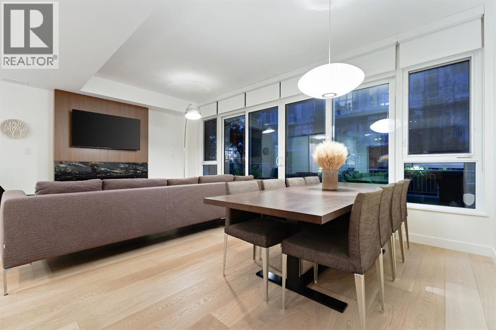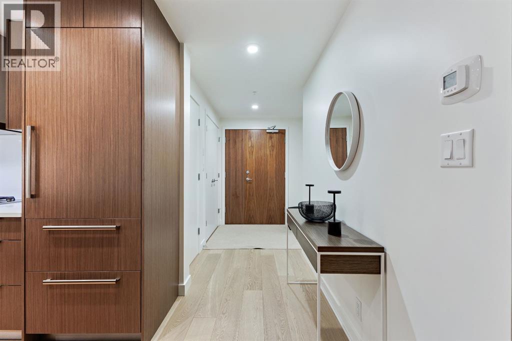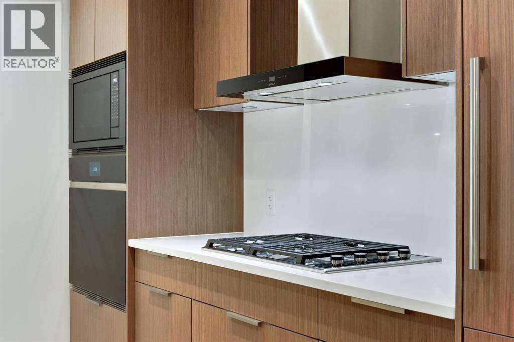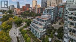 Welcome to Landmark at Waterfront, a boutique 5-storey executive condominium building perfectly positioned along the Bow River. This stunning 2 bed / 2.5 bath, plus den condominium combines luxury, sophistication, and functionality in one of Calgary’s most sought-after downtown addresses. Step inside to a spacious foyer featuring a conveniently located powder room and elegant finishes that set the tone for the home. Continue down the hall to the gourmet kitchen with marble and quartz countertops, complete with Wolf gas cooktop, Wolf built-in oven and microwave, Sub-Zero refrigerator, and Sub-Zero wine fridge. The kitchen is enhanced with owner-added built-in shelving, providing additional storage. The spacious living area features a stunning gas fireplace with a marble mantle, Herman Miller pendant lighting in the dining room, and large windows that flood the space with natural light. Adjacent to the living room is a spacious office/den that is perfect for working remotely. The primary bedroom is a serene retreat, offering a walk-in closet and a luxurious 5-piece ensuite with dual vanity, glass shower, and soaker tub. The secondary bedroom also includes its own 3-piece ensuite, providing comfort and privacy for guests or family members. One of the home’s most impressive features is the oversized outdoor patio — a rare offering in downtown living — perfect for entertaining, relaxing, or providing a great space for dogs. This exceptional residence includes two side-by-side underground parking stalls and a massive private storage room with custom shelving. Enjoy the best of urban living along the Bow River, with direct access to the pathway network, nearby restaurants, shops, and amenities — all within steps of your door. Landmark at Waterfront offers an unmatched lifestyle of comfort and convenience, including 24 hour security. (id:6769)