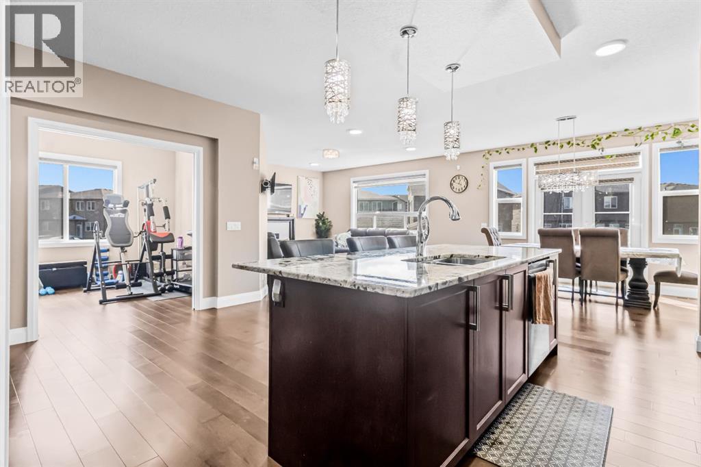 Welcome to this FULLY UPGRADED, executive home nestled in the heart of Cornerstone, one of Calgary’s most sought-after, amenity rich communities. This beautifully appointed home offers over 4,400sqft of total living space, combining elegance, functionality, and comfort for today’s modern family. Step through the grand double-door entrance into a spacious, sunlit family room, perfect for welcoming guests or relaxing in style. The open-concept floor plan seamlessly connects the family room to the gourmet chef’s kitchen, featuring granite countertops, premium cabinetry, and a massive island ideal for entertaining. Just off the main kitchen, you’ll find a beautiful SPICE KITCHEN with a walk-in pantry, making everyday cooking and hosting effortless. Flooded with natural light, the second spacious living room features a modern gas fireplace and flows perfectly into your dining area. There is also a main floor den that can easily function as a bedroom, complemented by a full bathroom, offering both flexibility and convenience. Upstairs, you’ll find four generously sized bedrooms, including a truly spectacular primary retreat. The primary master bedroom offers a peaceful escape with a massive walk-in closet and a luxurious ensuite featuring double vanities, soaker tub and a custom tiled shower. The other 3 bedrooms on the upper floor also each have direct access to a full bathroom. A centrally located bonus room provides a cozy family hangout space, and the pocket office/prayer room adds convenience and versatility for today’s modern lifestyle. The fully finished basement is an incredible asset—featuring a 3-BEDROOM illegal suite (subject to city approval) with a separate entrance, its own laundry, and a full bathroom—perfect as a mortgage helper or for extended family living. Outside, find your fully fenced and landscaped backyard, offering privacy, serenity, and an excellent place to hang out. Other notable features of this home include a triple car driveway, massive dou ble car garage, dual furnaces, over 6,200sqft lot, rear alley access and so much more! This is an extremely rare opportunity to own a custom-upgraded luxury home in an elite community. Homes like this don’t come along often—schedule your private showing today! (id:6769)