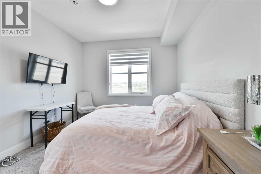 Welcome to this stunning top-floor, corner-unit condo offering over 1,100 sq ft of beautifully designed living space, featuring 2 bedrooms, 2 bathrooms, and an exceptional layout that blends comfort with functionality.From the moment you step inside, you’re greeted by an abundance of natural sunlight and a spacious front entry. To your left, a discreet laundry area and a generous flex room with double doors—ideal as a home office or additional storage—add to the versatility of this home. The thoughtful split-bedroom layout ensures privacy, with a large secondary bedroom and full bathroom on one side, and a spacious primary suite on the other, complete with a walk-in closet and private ensuite.At the heart of the home is the open-concept great room, dining area, and gourmet kitchen—perfect for entertaining. Step outside onto the expansive wraparound balcony and take in the serene ravine and mountain views.Two conveniently located underground parking stalls (#39 & #40) are just steps from the stairwell—making it a breeze to run up to the unit or quickly access your vehicle.Perfectly situated just a short walk to Aspen Landing’s shops, restaurants, and amenities, and within close proximity to top-rated public and private schools. Enjoy easy access to downtown Calgary, the mountains, and the airport, along with nearby public transit and future park spaces.Whether you're downsizing, investing, or seeking a lock-and-leave lifestyle for winter travel, this impressive residence offers it all. (id:6769)