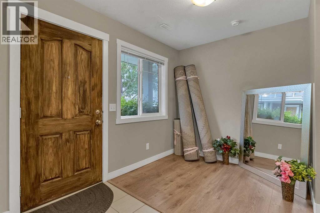 Welcome to this stylish and well-appointed 2-bedroom townhome in the vibrant community of Skyview Ranch. Thoughtfully designed for modern living, this multi-level home offers exceptional comfort, functionality, and convenience, complete with an attached single garage and two private balconies.The bright and open main living area features a spacious layout with large windows, allowing for an abundance of natural light. The contemporary kitchen is equipped with sleek cabinetry, stainless steel appliances, and ample counter space, making meal preparation a pleasure. The adjacent dining and living areas flow seamlessly, perfect for entertaining or everyday living. Step out onto the first of two balconies to enjoy fresh air and sunshine—ideal for morning coffee or evening relaxation.Upstairs, you'll find two generous bedrooms, including a primary suite with beautiful transom windows and 4-pc ensuite. A full bathroom, convenient upper-level laundry, and ample closet space complete the upper floor. The entry level offers room for a home office or flex room and direct access to your attached single garage, providing both security and ease in all seasons.Located in a well-maintained complex close to parks, playgrounds, schools, shopping, and transit, this townhome offers a perfect opportunity for first-time buyers, young professionals, or investors. Don’t miss your chance to own a beautiful home in the growing and family-friendly community of Skyview Ranch. Book your private viewing today! (id:6769)