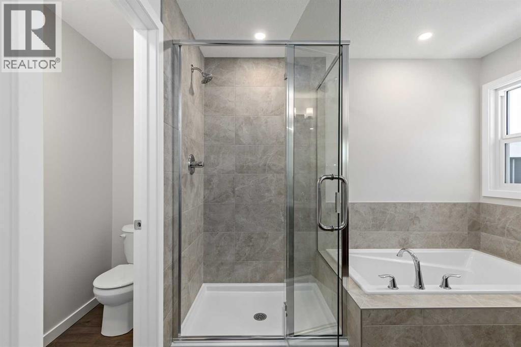 Westcreek Homes presents the SOHO plan backing on to a green space and playground with a separate side entry, double attached garage and well appointed upgrades throughout! From your attached double garage and front foyer enter into vinyl plank flooring and 9' ceiling height. A family style mudroom with bench and coat closet as well as a front coat closet add to the convenience of the plan. The open design main floor blends the kitchen, dining and lifestyle room into 1 outstanding plan with a full appliance package including a gas stove top, built in oven, center island, walk in pantry and chimney hood fan. Overlooking the dining area and back living room with views of the park and a perfectly placed main floor flex room/office. Access to your rear deck off the garden door and with a side staircase to the lower level with a private side entry. The upper plan has room for all, 2 front bedrooms, a generous laundry room, 4 piece guest bath and central bonus room. The primary bedroom is situate to the back of the home to enjoy your park views and comes with a walk in closet and 5 piece private ensuite bath including his and her sinks a deep soaker tub, water closet and tiled full size shower. Take advantage of a lower level with 9' ceilings which offers the layout for a legal suite or just extra space for the entire family to enjoy with a high efficient furnace and tankless hot water on demand. The plan, location, size and options to suit any of today's modern families! (id:6769)