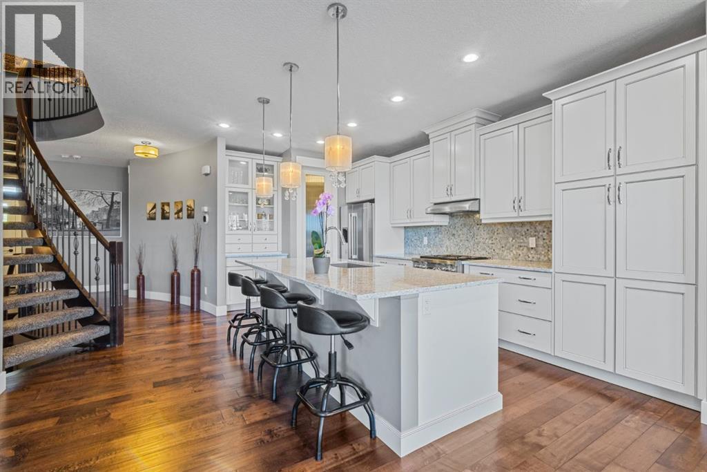 Wake up to breathtaking wetlands views every morning in this stunning 5 Bedroom 2 Storey Walk-Out home in Mahogany. With direct access to the pathways and serene natural surroundings, this home feels like your own private retreat, where trails for walking, biking, and exploring start right in your backyard. Step inside and prepare to be wowed by the open curved staircase, a showpiece that sets the stage for the elegance and warmth found throughout the home. The main floor was designed for both beauty and everyday function. The kitchen is a dream for anyone who loves to cook or gather, with high end appliances, quartz countertops, built-in storage, and a spacious walk-through pantry. The dining area opens onto the upper deck for easy indoor-outdoor living, while the family room with its cozy fireplace makes the perfect spot to wind down together. A dedicated den or office adds flexibility for working from home, studying, or simply keeping life organized. A full wall of windows floods the home with natural light and spectacular views. The mudroom is thoughtfully designed with built-in lockers and shelving, making it ideal for organizing everyone’s gear and everyday essentials, helping keep the home clutter-free. Upstairs is where this home truly shines for family living. On one side, the primary suite offers a peaceful retreat with a spa-inspired ensuite and direct access to the central laundry room. On the other, three spacious bedrooms are anchored by a central bonus room with beautiful coffered ceilings, the perfect hub for movie nights, games, or homework. This split design gives everyone their own space while still keeping family at the heart of it all. The walkout basement is built for entertaining and also features the 5th bedroom with a full bath. There is a media space with feature stone wall, a built-in study nook, and a large open family area. Outside, the yard feels like an extension of the natural landscape with a firepit for late-night chats, low-mainte nance landscaping, and direct access to the pathway system. The upper deck provides the perfect spot to relax and enjoy the wetlands views. Every detail has been carefully thought out, from the gorgeous hardwood floors on both the main and upper levels, to the heated garage with custom storage, built-in closet organizers, a 75-gallon hot water tank (2023), a home sound system, air conditioning, underground sprinklers, and more. Nestled in Calgary’s beloved lake community, this home offers year-round lake activities, from swimming and paddleboarding in summer to skating and bonfires in winter, with schools, shopping, and dining all nearby. This is a home designed for real life, where family memories are made, where weekends bring lake adventures, and evenings end gathered by the fire with the with wetlands as your backdrop. (id:6769)