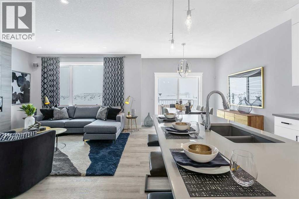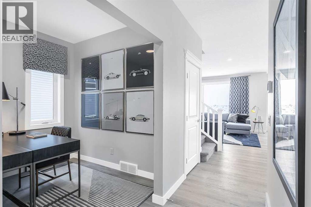 Welcome to your new home in one of Calgary's newest and most accessible communities - Hotchkiss. This beautifully designed 2040 SF home with a double car front attached garage and rear deck offers the perfect balance of comfort, style, and convenience—a short 5 minute drive to Seton amenities and quick access to Stoney and Deerfoot Trail. Step inside to find an open-concept floor plan filled with natural light, high ceilings, and modern finishes throughout. The spacious main floor features a large flex room suitable for a home office, and flows seamlessly into a gourmet kitchen complete with upgraded Samsung stainless steel appliances, quartz countertops, and a generous island—perfect for entertaining or casual meals. Upstairs, the primary bedroom is your personal retreat with large windows, a WIC and ensuite. Two extra bedrooms and a spacious bonus room provide ample space for entertaining, as well as comfortable accommodations for family and guests. (id:6769)