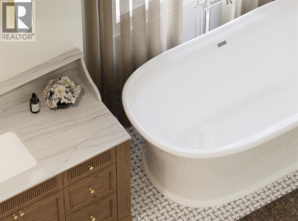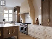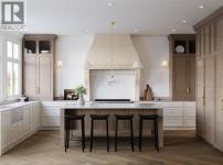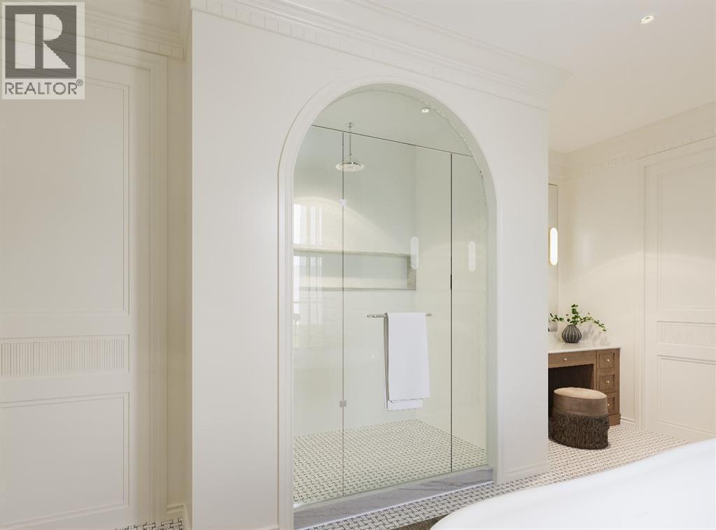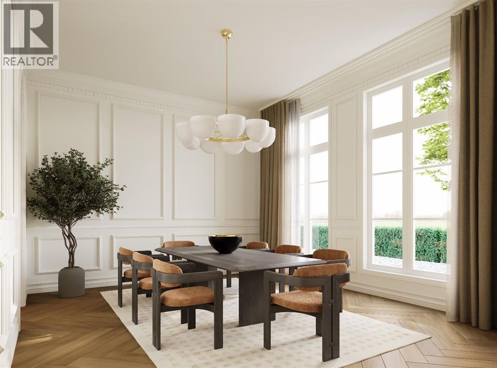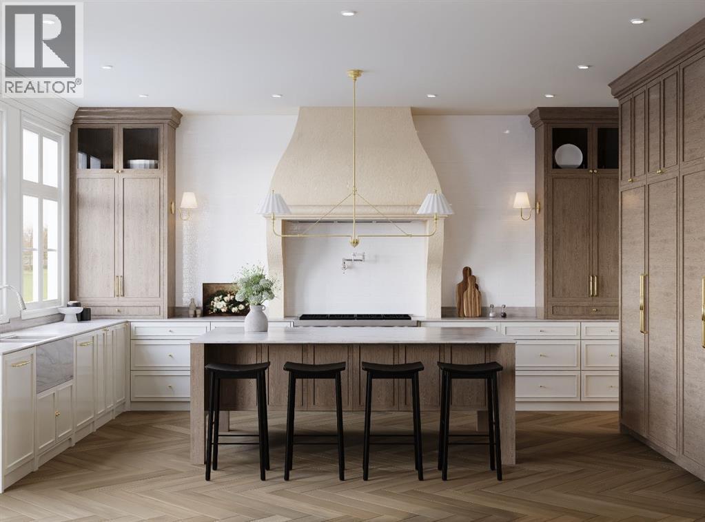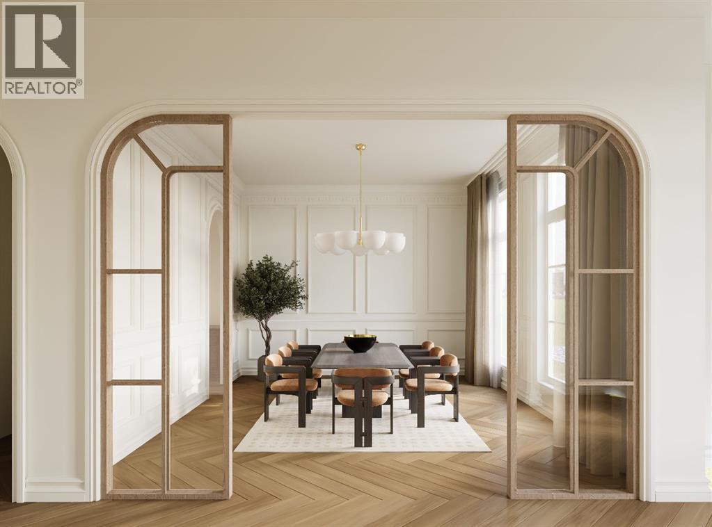 Nestled in the prestigious community of North Glenmore Park, this masterfully designed French Parisian–inspired residence by Bright Custom Homes offers over 5,100 sq ft of exquisitely finished living space across three levels. Set on a full-size lot, this 5 bedroom, 5 bathroom estate blends classical charm with modern sophistication, curated in collaboration with Aly Velji Designs. The main level welcomes you with grand proportions, 10' ceilings, extensive millwork, and herringbone patterned hardwood flooring. The chef’s kitchen features a curved Venetian plaster hood, Sub-Zero and Wolf appliances, custom cabinetry, natural quartzite, and intricate crown detailing. A fully equipped large butler’s pantry with vertical storage, and integrated prep space connects directly to the formal dining room adorned in custom wall panel moulding and natural light, ideal for hosting. The open concept living room offers coffered ceilings, a gas fireplace, and built-ins, while the adjacent dining nook opens to both a covered rear deck and an open air deck for year round entertaining. A beautifully appointed mudroom features Saltillo tile with black inserts, full-height custom cabinetry, a floating shelf, and a built-in bench. Near the foyer, a front facing office provides a quiet workspace with custom panel moulding, warm white millwork, and matching herringbone hardwood, the entire office in colour-drenching moment enclosed by glass paneled French doors. Heading upstairs from the curved staircase with curved drywall. Upstairs, the high tray ceiling primary suite includes a walk-in closet with reeded millwork and a luxurious ensuite with natural quartzite, double vanity, makeup desk, heated floors, and a curved steam shower. Three secondary bedrooms, two sharing a Jack & Jill bath and one with its own ensuite, are finished with elevated tile selections, polished chrome Delta hardware, and designer wall treatments. The upper level also includes a generous laundry room with built-ins and quartz surfaces, linen storage, and access to a private balcony. The fully developed basement features in-floor radiant heating, a spacious rec room, white oak bar with island, gym area, and a rough-in for a golf simulator ready for a full swing enclosure and projection system. A fifth bedroom and full bathroom complete the lower level. The home includes A/C, in-floor heat, dual hot water tanks (including one for radiant heating), smart thermostats, and full mechanical rough-ins for automation, security, speakers, and motorized blinds. Exterior highlights include triple-pane windows, acrylic stucco with stone veneer, and a fully insulated garage with drywall and EV charging rough-in. With its refined layout, elevated craftsmanship, and architectural character, this residence is a rare opportunity in one of Calgary’s most sought-after inner-city neighborhoods. Buyer’s will have the opportunity to work with the interior designer and make changes to the selections. Call today to book your private tour! (id:6769)