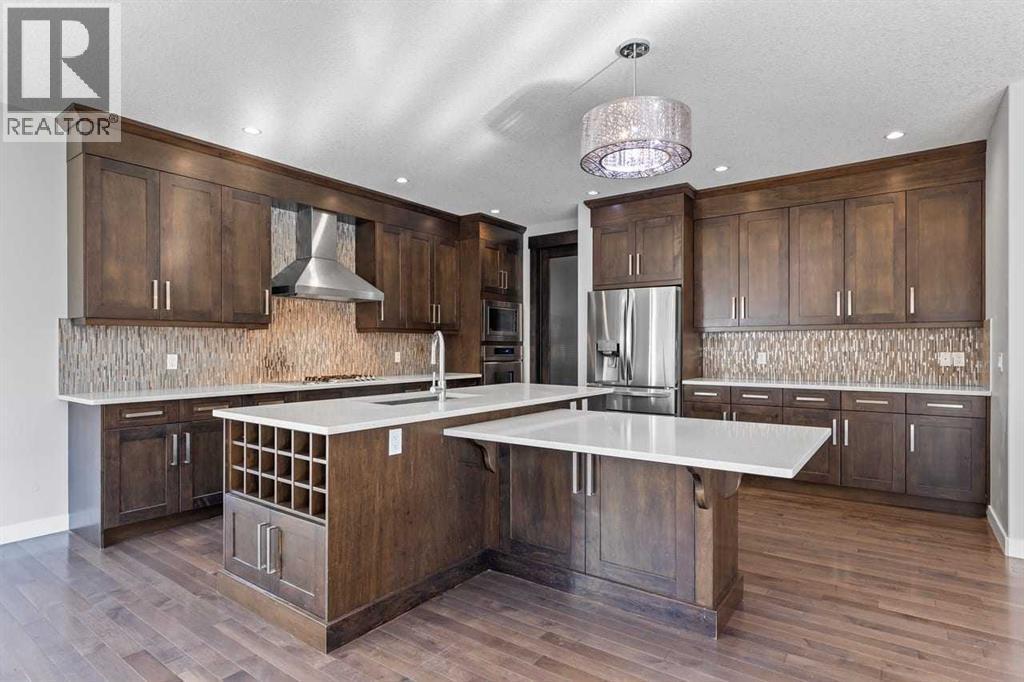 Perfectly situated in a quite cul-de sac in the exclusive community of Springbank Hill, is this magnificent 4700 sq.ft of opulent developed living space on a massive lot. This home encapsulates every detail with 6 bedrooms, 3.5 baths, 2 fireplaces and 9'ceilings on all floors. The main floor offers hardwood throughout, a front office/reading room, vaulted ceilings in the entry way and a formal dining area with custom chandelier. South West facing windows allow boundless natural light in the living room and a fireplace adorned with stylish tile work creates a warm ambiance while entertaining. The chef’s kitchen is outfitted with expansive quartz counter tops, custom cabinets and top of the line stainless Miele cooktops (Induction & gas) and dishwasher, Dacor built in oven and a new oversized LG fridge. The kitchen is thoughtfully designed to include an "Island to table" design and a massive walk-thru pantry. An oversized mudroom provides more closet storage for keeping clutter discrete and the a charming 2-piece bathroom finishes the main floor beautifully. Love sunlight? 2 Skylights keep the second floor bright and airy! The oversized primary bedroom is accented with a 2-way fireplace, large balcony overlooking the estate size yard, a spa ensuite including a jetted soaker tub, sleek shower and a spacious walk-in closet with a secret entry way to the baby's room. The 3rd and 4th bedrooms are well located opposite of the primary for further privacy and comfort. A 5-piece bathroom, laundry room and an oversized bonus room complete the upper floor . The lower level (roughed in in-floor heating) is just as special as the rest of the home which includes 2 bedrooms, 4-piece bathroom, wet bar, an enormous entertainment/ games room and private entry way to the garage. Retreat to your back yard oasis and you will notice the intricate custom stonework and professional landscaping equipped with irrigation and a playground at the top of the hill. Additional features include cen tral air conditioning for year-round comfort, CAT 5 pre-wire throughout and a triple-car tandem garage that offers ample parking and storage. Well situated with easy access to paths, public and private schools (including Rundle, Webber), shopping, restaurants, and transit. Easy access to city core and direct access to the mountains, this is a rare opportunity to own luxury in one of Calgary’s most desirable communities. Do not miss this opportunity! (id:6769)