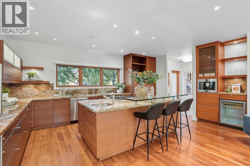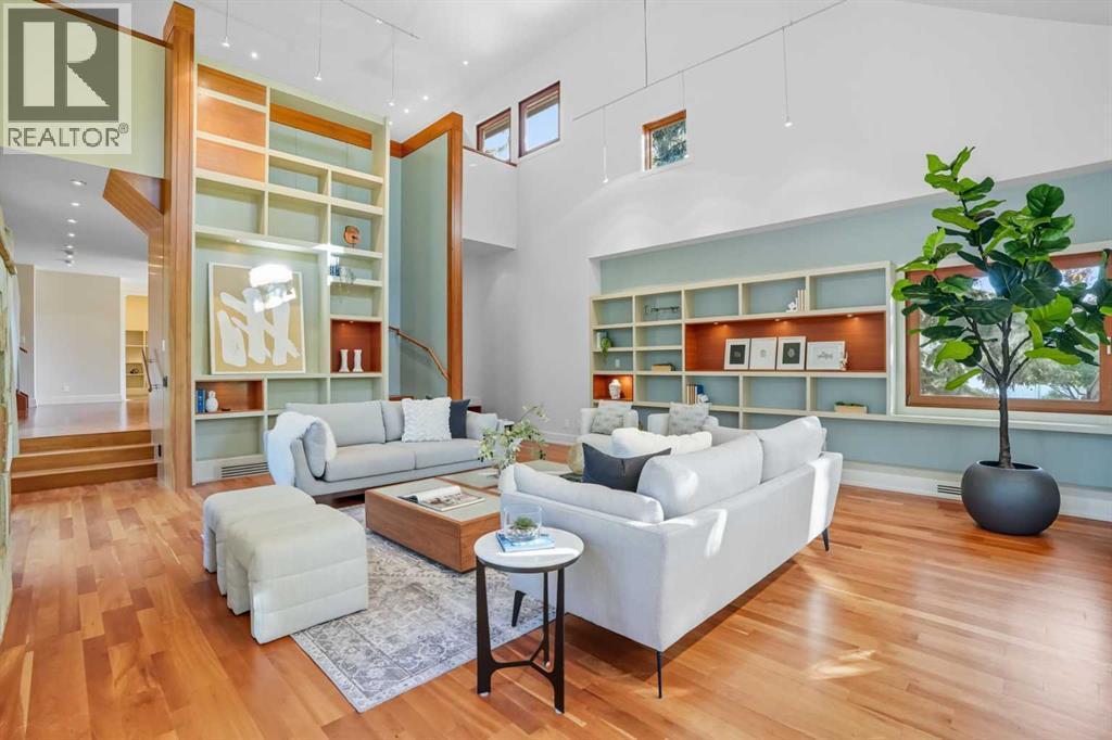 Are you looking to live in the exclusive, prestigious community of Bel-Aire? This is your chance to experience this amazing community of tree lined streets, luxury homes. This home is steps away from the Glenmore Reservoir and Calgary County Club. Situated on a massive over 12,000 sq/ft corner lot in a quiet cul-de-sac, this home offers over 5,800 sq/ft of TOTAL LIVING SPACE. As soon as you step inside the warm interior, you will feel at home.The front foyer is bathed in natural sunlight, and connects you with every corner of the house. The custom kitchen boasts double-stacked granite counter-tops, stainless steel appliances, and a paneled Sub-Zero fridge, blending seamlessly with the outdoor living space — perfect for entertaining. Have casual meals with your family via the custom eating nook or bar area, or entertain your guests in the private dining room and massive outdoor patio.The heart of the home is the BREATHTAKING GREAT ROOM — a stunning space with SOARING OVER 20-FOOT CEILINGS that create a grand sense of scale. TOWERING WINDOWS flood the room with natural light, while custom-built bookcases add warmth and character. A STRIKING FIREPLACE serves as the room’s focal point, with hand-cut stonework meticulously designed to complement the space. A HIDDEN STAIRCASE adds a touch of intrigue, blending functionality with sophisticated design. This remarkable room offers an inviting yet luxurious ambiance, perfect for quiet moments of relaxation or entertaining on a grand scale. This serene space is ideal for relaxation and gathering with loved ones.Upstairs, you’ll find three spacious bedrooms, each with their own ensuite and walk-in closet. The primary suite features a SPA-INSPIRED ENSUITE, a MASSIVE WALK-IN CLOSET, and access to the south-facing windows. Thoughtful touches can be found throughout the bedrooms, like a custom window bench, built-in office space, and Swarovski crystal-accented wallpaper elevate the design.The upper floor also includes a vers atile area ideal as an office, family room, or reading nook. The upstairs laundry room is bright and cozy due to the light from the corner windows. The fully developed basement features 10' ceilings, a guest bedroom with ensuite, and an open layout ready to suit your lifestyle.This EXCEPTIONAL HOME blends TIMELESS DESIGN with IMPECCABLE CRAFTSMANSHIP — a rare opportunity in one of Calgary's most sought-after communities. This home has been meticulously maintained by its owners, and it shows. Don't miss out on this extraordinary property. (id:6769)