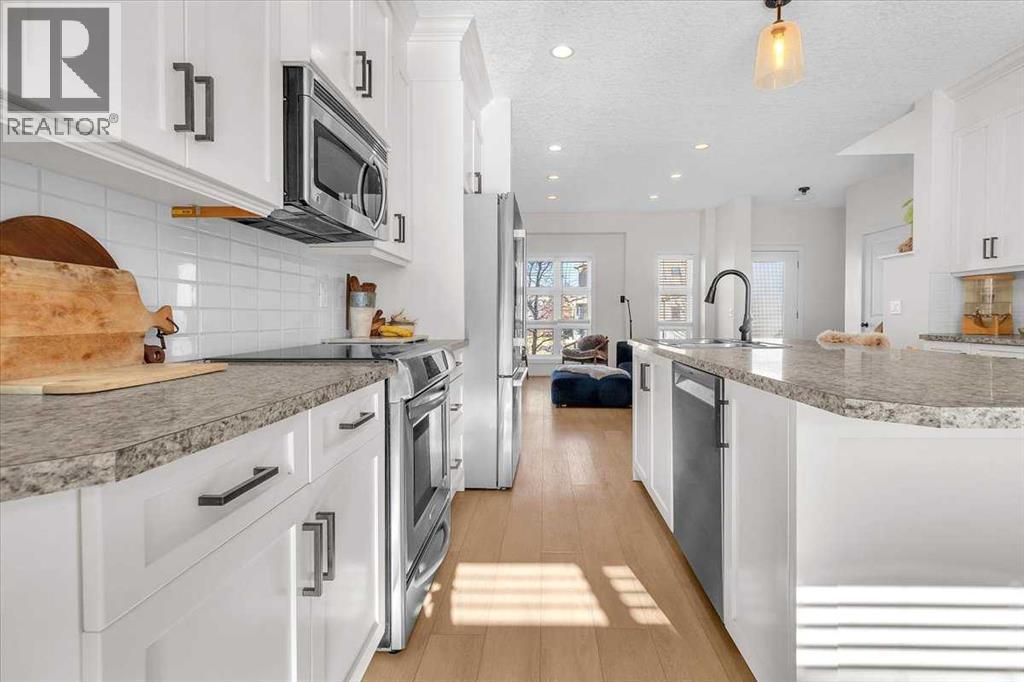 Style, Sophistication, and Location – This Home Has It All!Welcome to this stunning two-storey in the heart of Walden, offering over 1,700 sq. ft. of beautifully developed living space. From the moment you step inside, you’ll appreciate the renovated kitchen with full-height cabinetry, newer appliances and modern finishes—a perfect blend of function and style. The main floor features 9-foot ceilings, stylish flooring, and an open-concept layout that’s bright, inviting, and ideal for entertaining.Upstairs, you’ll find comfortable bedrooms and a fresh, modern feel throughout. The fully finished basement—also with 9-foot ceilings—adds even more living space for family, hobbies, or guests.Outside, enjoy your low maintenance private backyard oasis with a massive 24x24 garage that offers incredible storage and creates a cozy, sheltered setting for summer BBQs. This home is truly move-in ready, with a newer roof, and central air conditioning. Located close to parks, pathways, schools, transit, and shopping, this home delivers on style, comfort, and convenience. Welcome home. Welcome to Walden! (id:6769)