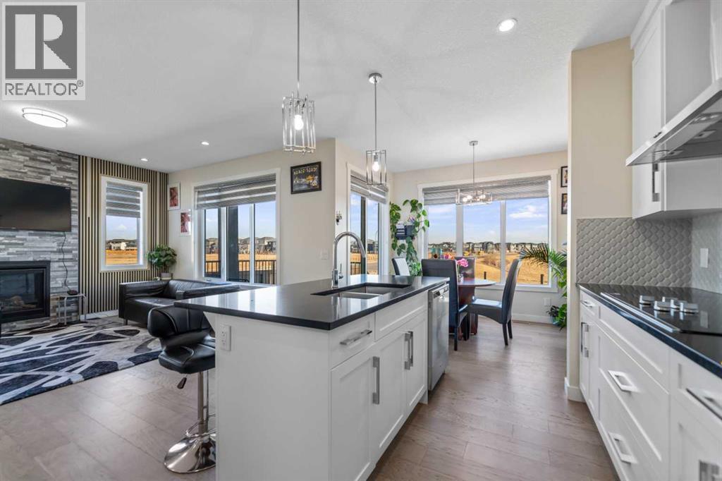 Welcome to Elevated Living in Cornerstone NE!This rare gem is a fully upgraded luxury home on a premium corner lot with NO NEIGHBORS on THREE SIDES, offering a beautiful POND view at the back and a PLAYGROUND right in front.This home boasts over 3460 sq. ft. of living space, backs directly onto a peaceful pond, and faces a community playground — a perfect setting for families. It includes a fully functional spice kitchen for all your culinary needs, and a legal basement suite ideal for rental income or multi-generational living.This stunning home offers 7 BEDROOMS | 5 Full BATHROOMS | DUAL MASTER ENSUITES | MAIN FLOOR BEDROOM with attached FULL BATH | SPICE KITCHEN | 2-Bedroom LEGAL BASEMENT SUITE | Double ATTACHED GARAGE, combining elegance, comfort, and practicality across 3462 sq.ft. of total living space.Main Level – Step into the grand foyer with two large closets and admire the 9 ft ceilings and 8 ft tall upgraded doors throughout. The spacious living area with a large window welcomes you at the front — ideal for hosting guests or relaxing. Moving further in, the bright family area features a cozy gas fireplace, modern accent wall, and three large windows filling the space with natural light. A main floor bedroom with a full bathroom provides perfect flexibility for extended family or guests, with convenient access from both the bedroom and hallway. The gourmet kitchen is a showstopper — boasting built-in stainless steel appliances, glass cook-top, quartz countertops, full-height custom cabinetry, and a large center island. The adjoining spice kitchen offers a gas stove/range and pantry for added storage and convenience. The dining area leads directly to the back deck with a gas BBQ line, where you can enjoy peaceful POND views — a perfect setting for family gatherings or evening relaxation.Upstairs, retreat to the grand primary suite featuring a tray ceiling, private balcony overlooking the pond, a 5-piece spa-inspired ensuite with custom-tiled shower, soaking tub, and dual vanities, plus a spacious walk-in closet. A second master bedroom, also with a tray ceiling, offers its own 4-piece ensuite and walk-in closet — ideal for growing families or multi-generational living. Two additional large bedrooms are connected by a Jack & Jill full bathroom. Completing this level are a bonus room with tray ceiling and a convenient upper-floor laundry room.The fully finished basement features a 2-bedroom legal suite with a separate side entrance, modern kitchen with stainless steel appliances and gas stove, a cozy living area, a full bathroom, and separate laundry. The utility area includes two furnaces, a hot water tank, and ample storage space.Location is unbeatable — close to bus stops, schools, shopping, parks, and all amenities, with easy access to Stoney Trail and Calgary International Airport.Don’t miss this rare opportunity — Book your private showing today. (id:6769)