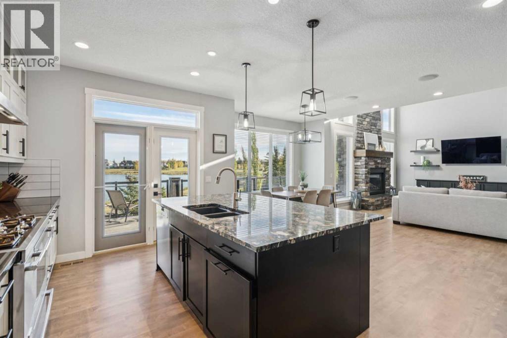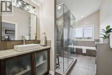 Welcome to this fully renovated LAKEFRONT GEM in the prestigious community of Monterra! Perfectly situated on a spacious PIE LOT, this property offers luxurious upgrades, stunning craftsmanship, and serene waterfront living at its finest.The exterior has been meticulously updated from top to bottom — featuring RE-LANDSCAPED FRONT and BACK YARDS with an OPEN IRRIGATION SYSTEM, PROFESSIONALLY REPAINTED COMPOSITE SIDING, refreshed trims and cedar accents, and a NEW RUBBER SLATE SHINGLE ROOF complete with UPDATED FLASHING and EAVESTROUGHS. The BACKYARD SHED has been refinished to match, while LED LIGHTING now highlights the home’s impressive curb appeal day and night.Step inside to a grand foyer with OPEN-TO-BELOW CEILINGS and elegant GREGIO NATURAL TILE FLOORS that set the tone for the rest of the home. The dining room features beautiful WAINSCOTING and NEW LIGHTING, while the gourmet kitchen shines with QUARTZ COUNTERTOPS, CUSTOM CABINETRY, new shelving, a BUTLER’S PANTRY with COFFEE BAR, and PREMIUM APPLIANCES — including a Frigidaire PROFESSIONAL SERIES FRIDGE, Bosch MICROWAVE SPEED OVEN, Frigidaire GAS STOVE, and HIGH-END WINE/BEER FRIDGE. The inviting living room centres around a FLOOR-TO-CEILING STONE GAS FIREPLACE and opens to an expansive EAST-FACING DECK with GLASS RAILING and BREATHTAKING LAKE VIEWS.Upstairs, NEW CARPETS (2023) with 10 lb UNDERLAY lead to four spacious bedrooms, each enhanced with CUSTOM CALIFORNIA CLOSETS. The primary bedroom impresses with VAULTED CEILINGS, a BUILT-IN DESK, FIREPLACE, and a spa-inspired ENSUITE showcasing QUARTZ COUNTERS, DOUBLE SINKS, a JETTED TUB, and a TILED SHOWER. The RENOVATED GUEST BATH offers QUARTZ COUNTERS, DOUBLE SINKS, and a BUILT-IN LINEN CLOSET, while the laundry room adds extra cabinetry and counters for everyday convenience.The FULLY FINISHED WALKOUT BASEMENT provides even more space to enjoy — featuring a 5th bedroom with CALIFORNIA CLOSET, UPDATED BATHROOM, GAS FIREPLACE, and NEW FLOORING throughou t. The REC ROOM comes complete with a POOL TABLE and RACK (new 2024) and a CUSTOM SHUFFLEBOARD, making it the perfect spot for entertaining family and friends.Additional highlights include DUAL FURNACES, DUAL HUMIDIFIERS, BUILT-IN SPEAKERS, and a HEATED TRIPLE GARAGE with EPOXY FLOORS, NEW windows, doors, rails, and hardware.This move-in-ready lakefront retreat is a rare find that perfectly blends luxury, comfort, and style — a true Monterra masterpiece! (id:6769)
