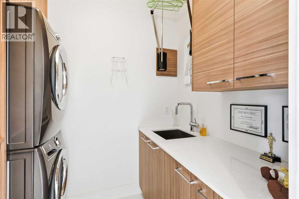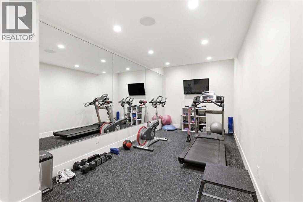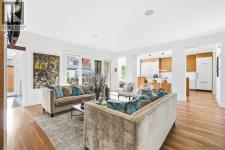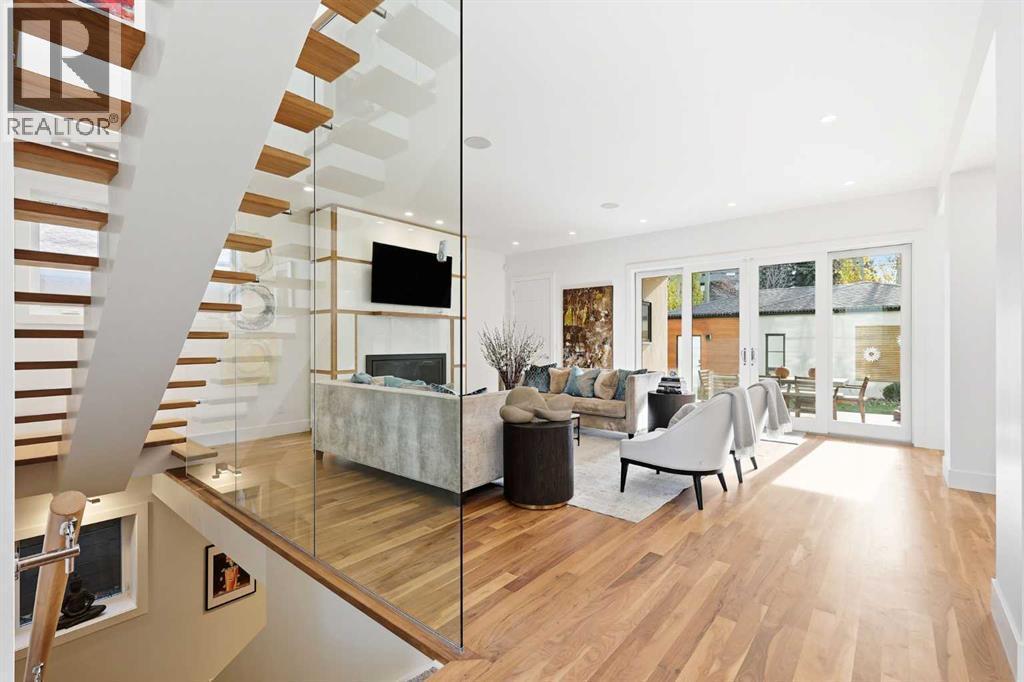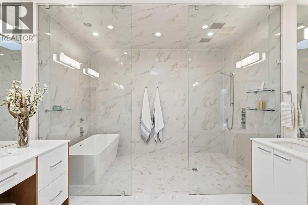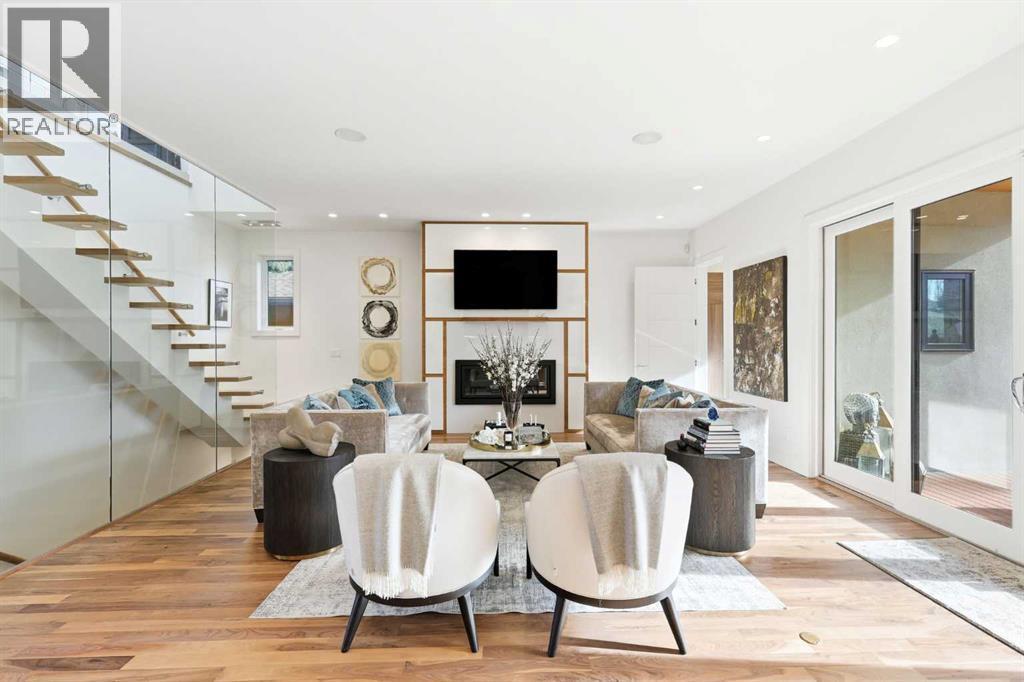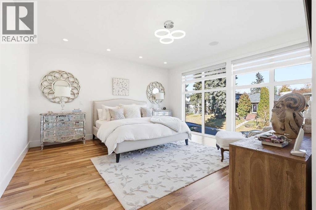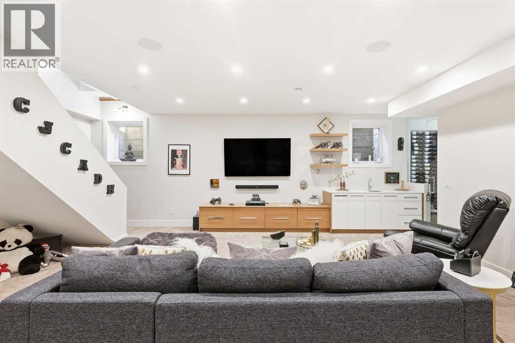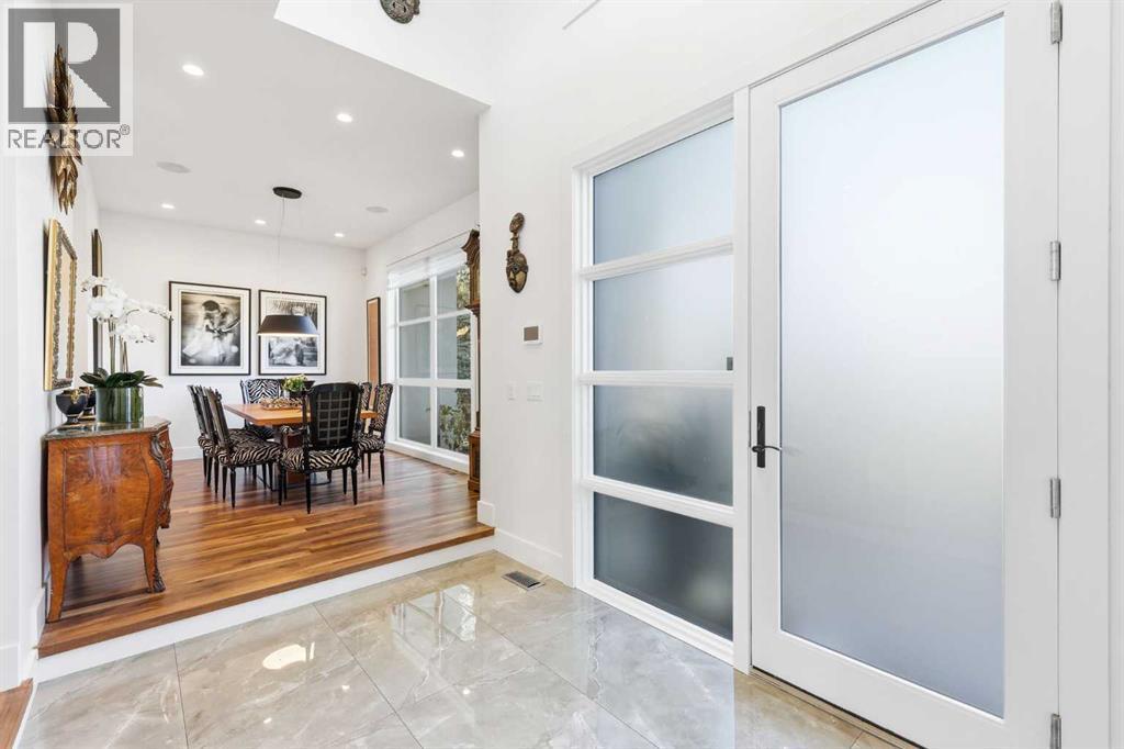 Experience refined contemporary living in this exceptional Elboya residence, offering over 4,700 square feet of luxurious space designed for comfort and style. This sophisticated home features 5 bedrooms, 3.5 bathrooms, and a south-facing backyard with a covered deck—all set along a beautiful tree-lined street. The main level impresses with 10-foot ceilings and exotic walnut hardwood floors, complemented by a bright formal dining room, private office, and inviting family room. The chef-inspired kitchen showcases Miele appliances, a large island with quartz countertops, custom cabinetry, a spacious butler’s pantry, and premium Riobel and Brizo fixtures.Upstairs, the expansive primary suite is a true retreat, featuring a stunning dressing room and a spa-like ensuite with heated floors, dual sinks, a freestanding tub, and a luxurious walk-in shower. Three additional bedrooms with generous walk-in closets, a laundry room, loft area, and bonus room complete the upper level. The lower level is designed for both relaxation and entertainment, offering in-floor heating, a theatre room, guest quarters, a steam shower, recreation area, and wine room.Outside, enjoy a beautifully landscaped garden, and your own private oasis with a relaxing hot tub and lounge area. A triple detached garage provides ample space for vehicles and storage. Perfectly situated near Elboya Park, top-rated schools, and boutique shopping, this remarkable home blends modern elegance with everyday convenience—a must-see property in one of Calgary’s most desirable neighbourhoods. Click on the virtual tour or book your showing today. (id:6769)