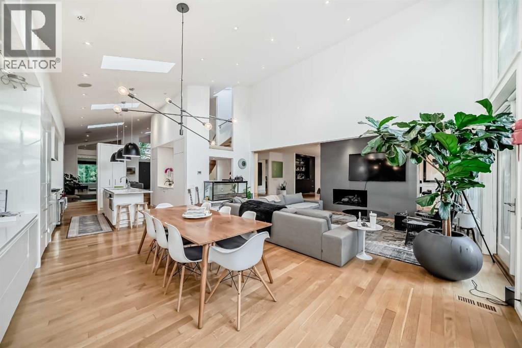 Welcome to Elbow Park! Nestled along the banks of the Elbow River and located on the prestigious Riverdale Avenue—one of Calgary’s most desirable streets—this stunning 3,795 sq ft home offers breathtaking river views, exceptional design, and the ideal spaces your family has been dreaming of.Designed with openness and elegance in mind, the home features soaring vaulted ceilings, floor-to-ceiling windows, and two cozy fireplaces that enhance the inviting atmosphere. The open-concept main level boasts a bright living room, a quiet home office, a formal dining room, and a spacious family room. The gourmet kitchen is a chef’s dream with granite countertops, a breakfast nook, and a casual eating area.Upstairs, the luxurious primary suite overlooks the river and includes a private retreat, two generous walk-in closets, and a spa-like 6-piece ensuite. Two additional bedrooms share a 4-piece bathroom, and a bright loft area offers views over the family room below.The fully developed lower level includes a media/family room, two more bedrooms, an exercise room, and a 3-piece bathroom. Step outside to enjoy the peaceful setting featuring river views, a large concrete patio, and a professionally landscaped yard perfect for relaxation and entertaining. (id:6769)