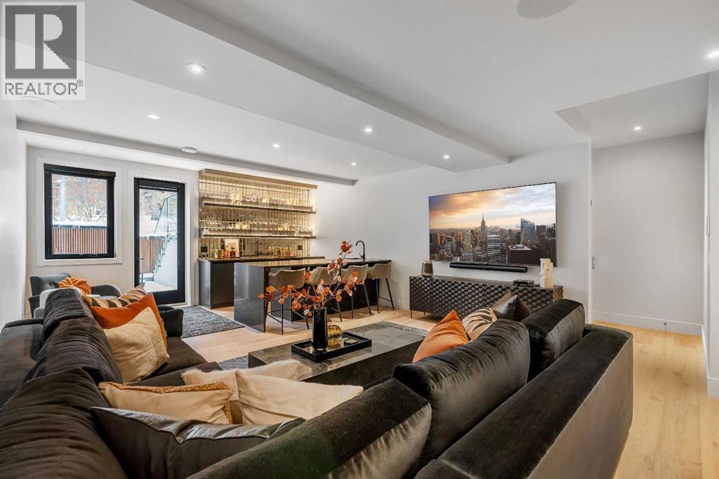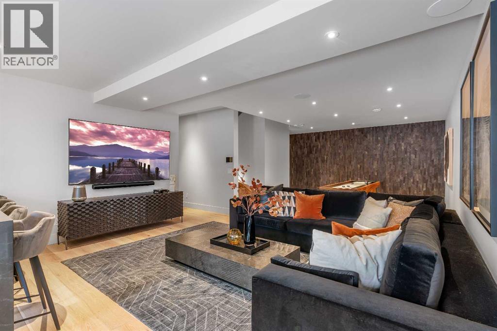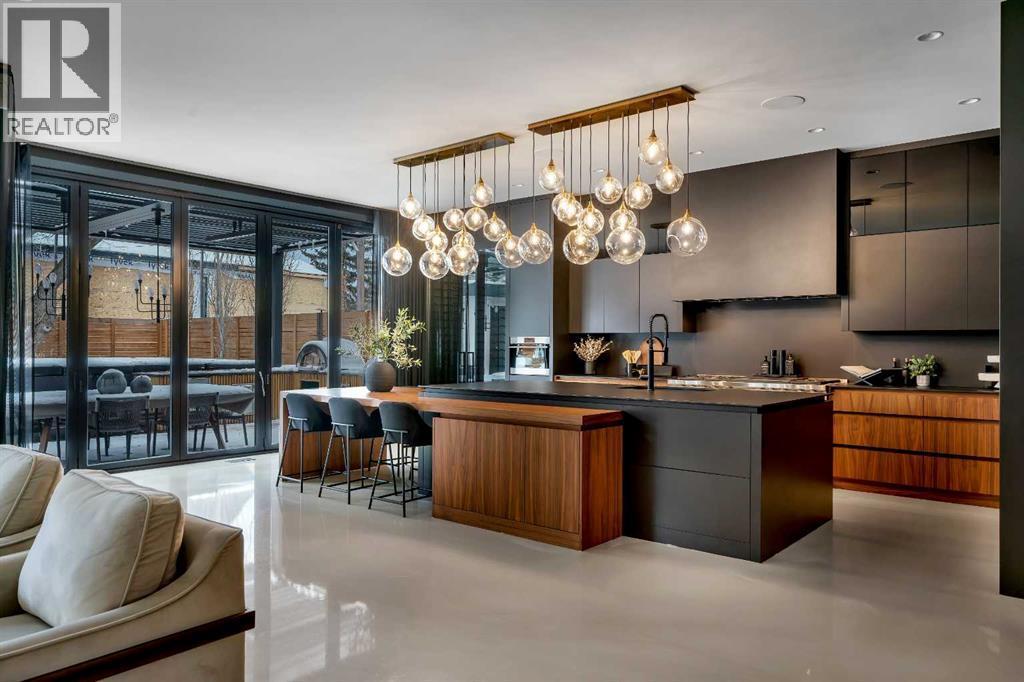 Understated elegance & sophistication describe this gorgeous property located on one of Elbow Park’s most sought after streets. Offering 4+1 bedroom’s, 9 bathrooms and 7,136 SF of livable space this home has been meticulously brought to life by DWK Interiors and was a finalist for Western Living’s ‘Interior Designer of the Year’ Award. You are welcomed in to a large foyer and will immediately feel the bespoke finishing as your view takes in the Pearl White Epoxy floor and smoky finished mirrors. The heart of a home is the kitchen where Black Dekton Stone is freely used for countertops, backsplash and cabinetry that is beautifully contrasted with walnut features. The 60” Wolf Range and SubZero Refrigerator are best in class. The Dekton continues into the Butler Pantry which offers augmented prep space and an oversized 2nd Fridge and Freezer. Take your eyes off of the 16’ Island and oversized rain-drop light fixture and you won’t miss the temperature controlled wine cellar (220 Bottles) that leads right into the rear wall which is a full Nano Accordion Door that fully opens to the outdoor space. A custom wall bar compliments all these spaces as you move into the living room which makes a statement with the Walnut feature wall! From the living room you can easily walk past a chic powder room and find yourself immersed in the event space set up with entertainment in mind. This room exudes class with White Oak herringbone patterned hardwood grounded by a black & gold diamond design built-in. The ceiling is covered in black leather-like wall paper and all leads to a formal dining area lit up by a 10’ gold custom chain link layered fixture. Venture upstairs to 3 secondary bedrooms that are all Suite-Like with exclusive ensuites and customized perfectly for the whole family. The Primary Suite offers 2 separate walk-in closets and an ensuite which features more Dekton counters with accents of gold and white & full slab tiled walls. LOVE the floating bath and the steam sho wer showcasing Italian wood textured tile. Upstairs laundry room with double washer and dryers completes this floor. The 3rd story loft is perfect as a bonus room, office or craft room with private bathroom and roof-top patio. It offers a fridge, sink and mini dishwasher with custom millwork and built-ins. The walk-up lower level functions perfectly as a family retreat and games space with a full service bar area. A Large fitness room also showcases a custom one-of-kind wall mural by internationally known artist Michelle Hoogsveld. The 5th bedroom and private ensuite is set up for a live-in nanny or house guests. Huge mud-room with lockers and cabinetry allow for hiding all your gear. Oversized triple/tandem garage has slat walks to assist with storage, dog or bike wash and heated epoxy floors. The rear yard offers multiple multiple options for play-time or relaxation with an oversized pool with swim up bar and fully appointed outdoor kitchen including pizza oven! Call for private showing today! (id:6769)