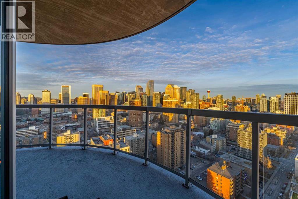 A rare opportunity in the Beltline offering unobstructed, 180-degree sweeping views from four private balconies. Privately positioned on a floor shared with only one other residence, this 3-bedroom, 2,300 sq. ft. home combines expansive living spaces with exceptional quality. The primary suite exceeds an impressive 200 sq ft, featuring a luxurious five-piece ensuite and a generous walk-in closet. Two additional bedrooms, two full bathrooms, a powder room, and a den provide flexibility and comfort for family or guests. Constructed with quadruple-glazed windows, 8-inch concrete floors, and double-layered drywall, the home offers superior soundproofing, privacy, and comfort. Interior highlights include a gas fireplace framed by stunning city views, dual heating zones with air conditioning, Hunter Douglas automated window coverings, and a gourmet open-concept kitchen equipped with Wolf and Bosch appliances. The four private balconies provide uninterrupted views spanning from east to west, capturing both the downtown skyline and the mountains. Enjoy city events such as the Stampede fireworks right from your balcony. Included are two titled side-by-side P1 parking stalls conveniently located near the elevator, featuring upgraded EV chargers. Two storage lockers are also included, and the unit can be offered fully furnished. The Montana offers full concierge service and a level of construction and privacy that continues to set it apart. Ideally located in the heart of the Beltline—home to Calgary’s finest dining, culture, and entertainment—this residence defines elevated urban living. (id:6769)