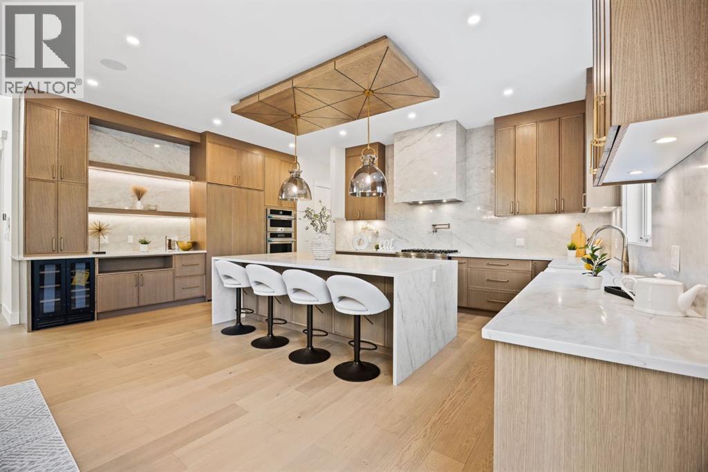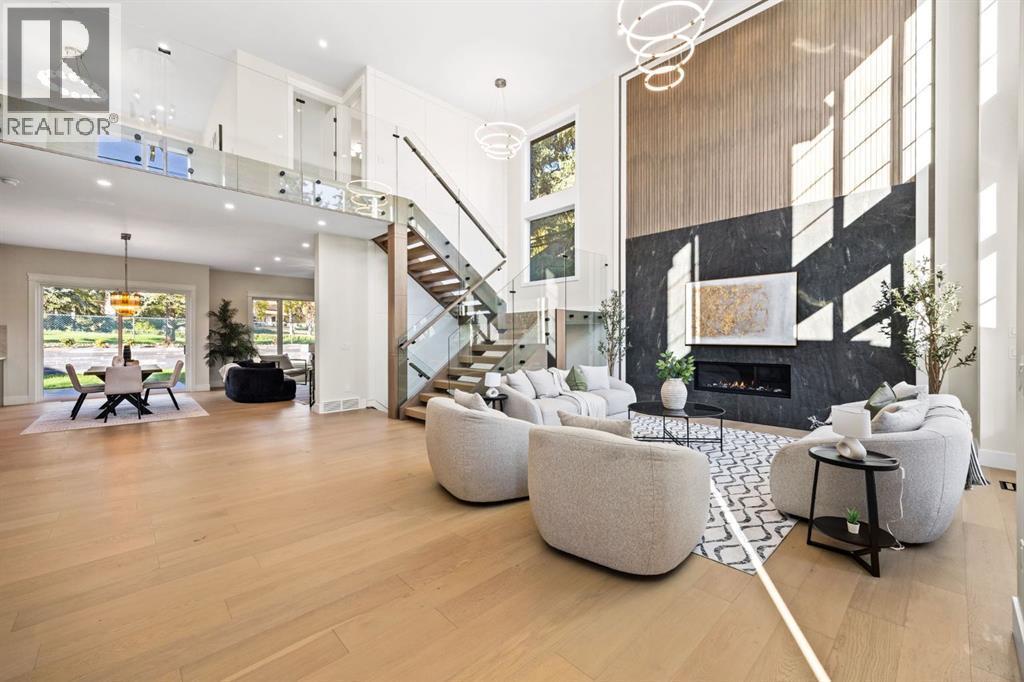 Welcome to this extraordinary, brand-new custom estate home, perfectly positioned in the highly sought-after community of Varsity Estates. Backing directly onto the golf course, this residence offers breathtaking views of the fairways from nearly every principal space, including the kitchen, dining room, master suite, guest bedroom, family room, bonus room, and the beautifully landscaped backyard. From the moment you enter, you’re greeted by soaring open-to-above ceilings, modern glass railings, and designer chandeliers that create an immediate sense of elegance and grandeur. The thoughtfully designed floor plan offers both formal and casual living spaces, featuring a sophisticated living room and a warm family room, each highlighted by its own fireplace. At the heart of the home is a gourmet kitchen equipped with premium JennAir appliances, a convenient coffee bar, and an expansive island perfect for entertaining. Seamlessly connected dining and living areas provide an ideal setting for gatherings, while expansive windows frame stunning golf course vistas. This residence features 4 generously sized bedrooms and 5.5 bathrooms, including a luxurious master suite with panoramic views, a spa-inspired ensuite with heated floors, steamer in shower and a custom walk-in closet. Additional highlights include an executive office, home gym, theatre room, and a wet bar designed for elevated entertaining. Luxury is in every detail—heated washroom floors, central air conditioning, and high-end lighting throughout. Practicality meets modern convenience with 200-amp electrical service, EV charger readiness, and a triple heated garage with epoxy flooring. Blending contemporary architecture with timeless finishes, this Varsity Estates masterpiece offers more than just a home—it delivers an unrivaled lifestyle in one of Calgary’s most prestigious communities. Book your Private Tour now. (id:6769)