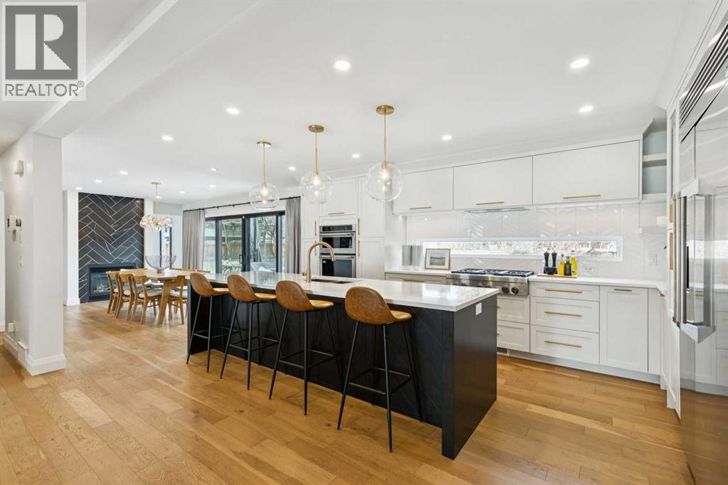 Introducing an exceptional opportunity in Lake Bonavista on a private Cul-de-Sac, facing a green space — A premium executive residence designed for families who value refined living + effortless functionality. Perfectly positioned on a rare 716 m² estate-sized lot, just steps to the lake, schools, shopping + convenient access routes. Contemporary in flavor with uncompromising attention to detail, this open-concept home showcases engineered hardwood flooring throughout — including the upper + lower levels (2024) — with absolutely no carpet anywhere. High-end windows, updated plumbing + electrical, HE furnace, air conditioning (2025), flat ceilings, fresh stucco + paint, LED lighting, custom built-ins, designer tile work in cement/porcelain/marble, quartz counters + custom glass accents create a polished + cohesive aesthetic from top to bottom. The heart of the home is a stunning renovated kitchen featuring a statement island, professional-grade appliances, gas cooktop + sleek custom cabinetry. The expansive informal dining room is anchored by a beautiful gas fireplace which allows for seamless indoor-outdoor living as the interior flows effortlessly to the private backyard through newly installed (2024) expansive Lux sliding doors. A dedicated main floor office offers the perfect work-from-home solution, while the oversized mudroom with built-in lockers keeps busy family life beautifully organized. The double attached garage offers generous space for vehicles and storage, now enhanced with a dedicated 240V/50A circuit (2024) for high-speed EV charging. This infrastructure is supported by a newly installed (2024) 200-Amp electrical panel, making the home solar-ready for immediate installation without the need for further utility upgrades. Upstairs, four well-sized bedrooms with built-in closets await, along with convenient upper laundry. The primary suite is a true retreat — privately positioned as its own wing — featuring a walk-in closet + a spa-inspired ensuite with heated marble floors, dual vanities, stand-alone shower + luxurious soaker tub. A charming family bath completes the upper level. The fully developed lower level expands your living space with a large family room featuring a gas fireplace, dedicated gym area, play space, a guest room + a full bath. Outdoors, enjoy a huge new Timbertech deck (2024) surrounded by mature landscaping — complete with a new irrigation system for the entire property (2024) This private setting is perfect for summer gatherings + quiet evenings alike. (id:6769)