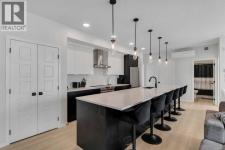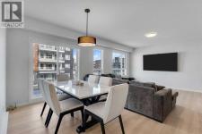 Stylish Corner Unit with Expansive Balcony and Premium Upgrades (L4 Floorplan).Welcome to this spacious 1,092 sq ft corner unit, offering a bright and modern layout with 2 bedrooms and 2 full bathrooms. With 9-foot ceilings and large windows throughout, the home feels open, airy, and filled with natural light—especially in the west-facing bedrooms, perfect for enjoying warm afternoon sun.The gourmet kitchen upgrade is a standout feature, showcasing an extended granite island, elegant two-tone cabinetry, chimney-style hood fan, stainless steel appliances, and a built-in microwave. This well-designed space is ideal for both everyday cooking and entertaining guests.Durable luxury vinyl tile flooring with sound-reducing membrane adds both comfort and style to the living areas. The primary bedroom offers a functional retreat with a large walk-in closet and a private ensuite bathroom.Additional highlights include air conditioning, electric baseboard heating, triple-pane windows for energy efficiency, and a large in-suite storage room with stacked washer and dryer.Step outside onto the impressive 23-foot balcony, complete with a BBQ gas outlet, providing the perfect space for outdoor dining and relaxing.The home also comes with a titled underground parking stall, adding convenience and security year-round.A rare combination of space, upgrades, and a prime corner layout, this home is perfect for comfortable modern living. Close to shopping, and all amenities! (id:6769)