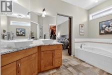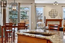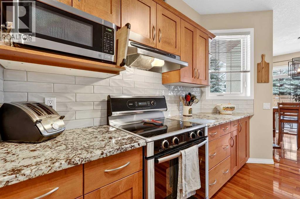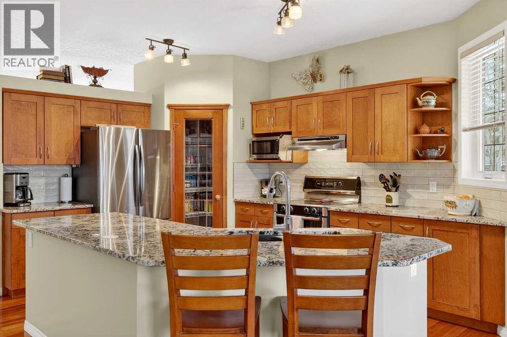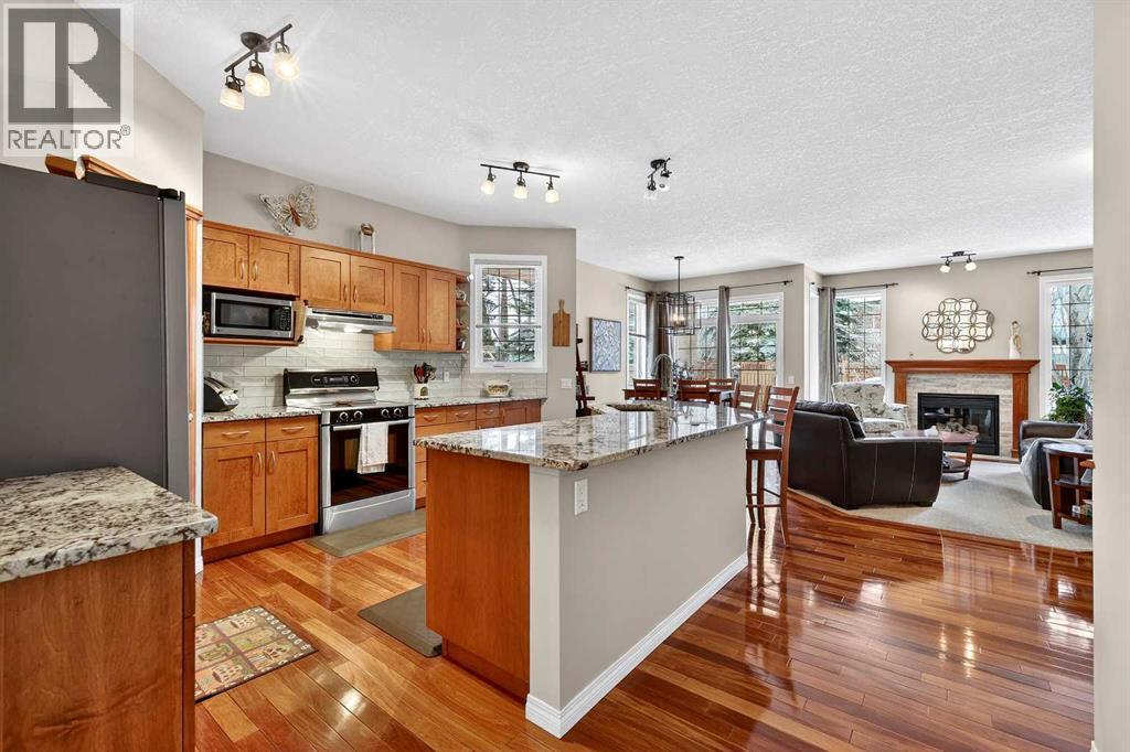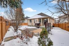 Enter a home that seamlessly blends spacious, sunny interiors with relaxing outdoor living. Custom decor, privacy, spa-inspired features, and beautiful perimeter gardens provide a standout choice for anyone seeking a functional, yet luxurious sanctuary in the heart of Cranston. This immaculate 4-bedroom, 2.5-bathroom bungalow, with nearly 2900 sqft of developed living area is perfectly situated on a spacious 6675 sqft pie lot just steps from Cranston Ridge, mountain views and the Bow River pathways. Designed throughout for comfort and functionality, you'll first step up to a generous formal dining area or versatile front room. The main living space features rich Brazilian cherry hardwood flooring and an open-concept layout that flows into a finely appointed kitchen. This chef-inspired space is anchored by updated granite countertops and a massive island, complemented by premium Bosch appliances and a spacious corner pantry. The adjacent eating area and living room includes a cozy gas fireplace, walking directly out to an elevated deck - two steps down to a meticulously manicured and landscaped back yard. The primary bedroom suite offers ample space for a king-sized bed, with a large walk-in closet, and a spacious recently-renovated 5-piece ensuite complete with a dual vanity and jetted tub A second bedroom on the main floor provides the perfect layout for a dedicated home office or den. Practicality is found in the tiled main landing, which includes a 2-piece powder room and a large laundry room, entering from the attached double garage featuring a new garage door.The fully developed lower level adds another 1266 sqft of developed living space, starting with a massive recreation room, highlighted by new marble floor to ceiling fireplace and a convenient wet bar for entertaining or peaceful relaxation. This level includes a sunny large third bedroom that shares a convenient 4-piece Jack and Jill bathroom, with a functional 4th bedroom space. The bathroom featur es a custom Finnish cedar wet sauna, providing a full spa experience.Outdoor living is the true highlight, featuring a large private yard anchored by a spacious deck that steps down to a custom stone patio, all surrounded by beautiful perimeter gardens, including apple and other fruit trees and flowering bushes. The expansive pie lot also allows room for a future RV pad alongside the house and includes a spacious shed. Located close to the City pathway system, schools, and Cranston’s community amenities, your next home offers a priceless combination of light, space and quality finish in one of Cranston's most desirable locations. (id:6769)